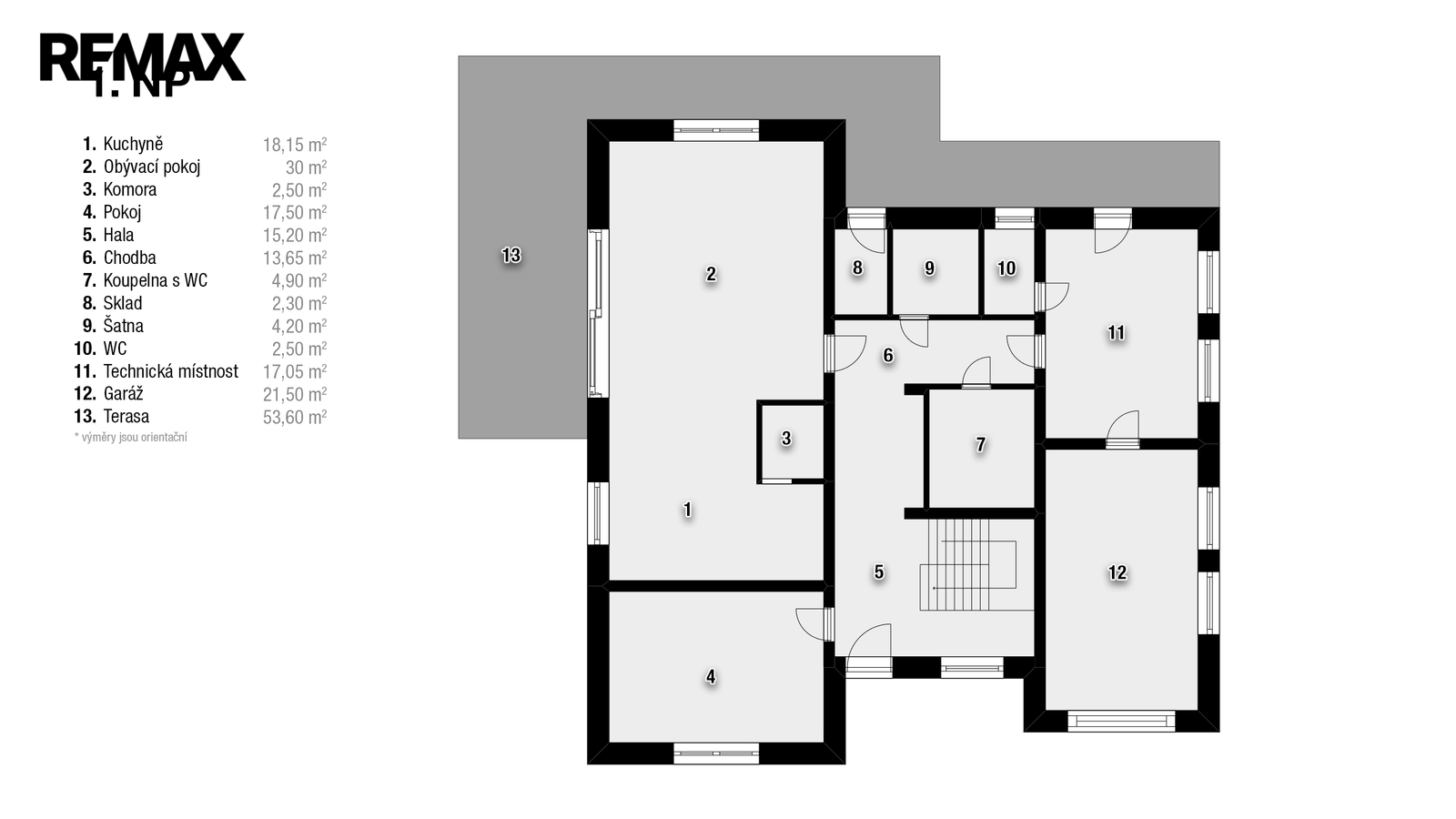 • užitná plocha celkem: cca 303 m² (včetně balkonu a garáže)