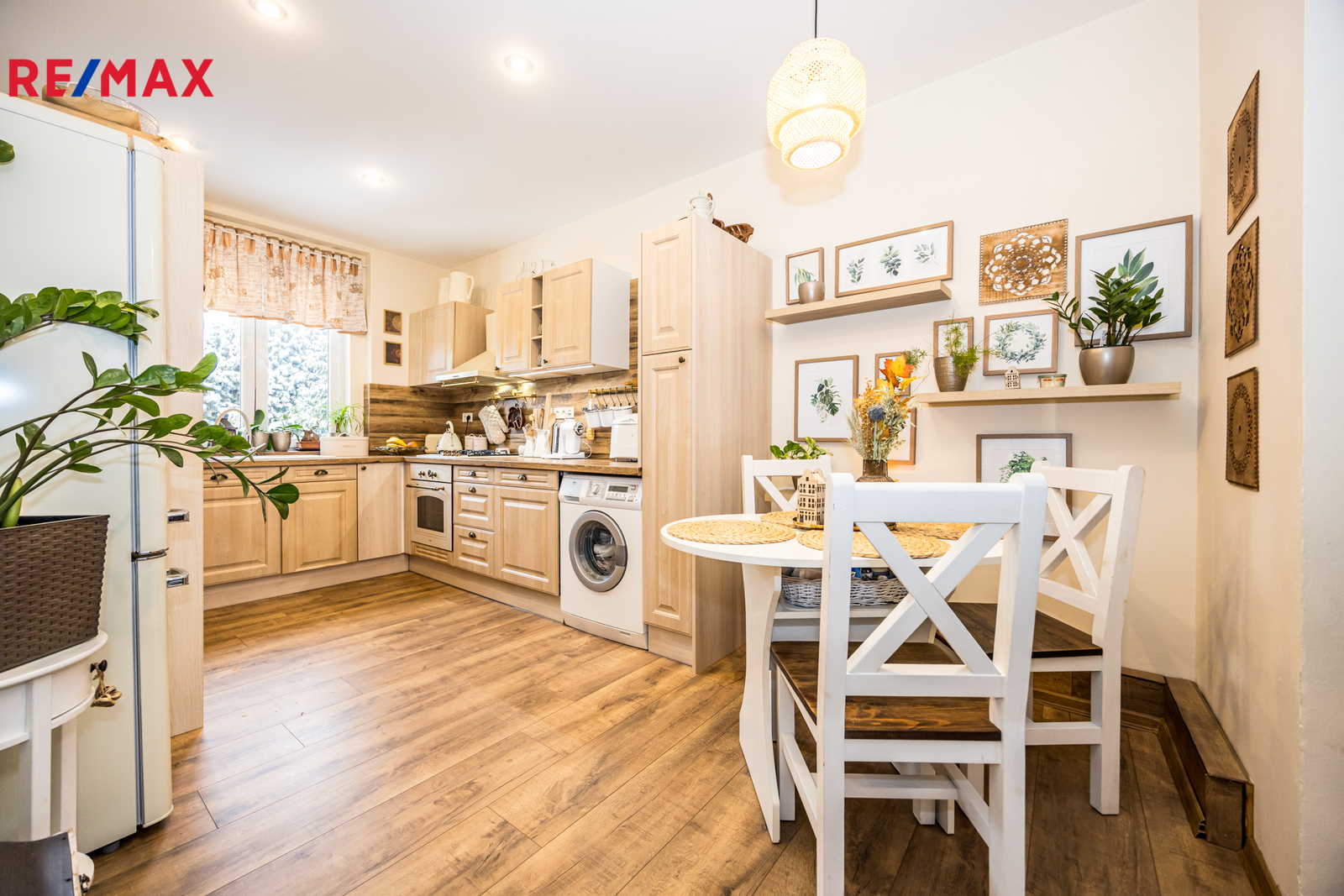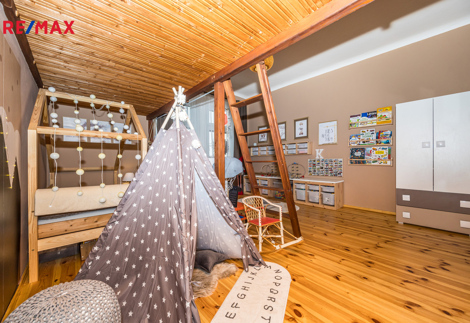 Ve 2. patře domu se nachází zrekonstruovaný byt o dispozici 3+1, který je ihned obyvatelný a vhodný k okamžitému pronájmu. Podkroví nabízí možnost vybudovat plnohodnotnou jednotku 3+1.