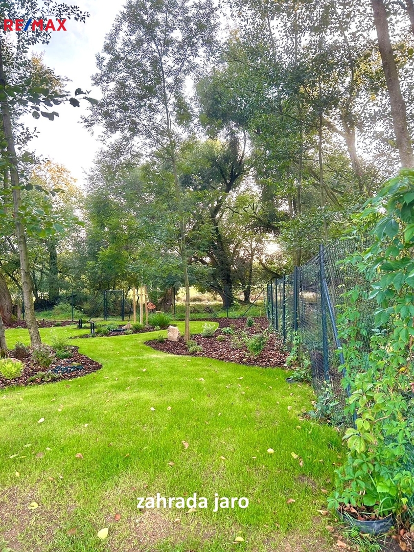 Novostavba rodinného domu (dokončeno v listopadu 2023), bydlení v jednom podlaží, propojení interiéru se zastřešenou terasou, na niž navazuje rovinatý pozemek zahrady, řízení chodu domu prostřednictvím aplikace „chytrá domácnost“, blízkost dálnice D8, to jsou hlavní přednosti, které činí z tohoto domu s pozemkem zahrady ideální bydlení.