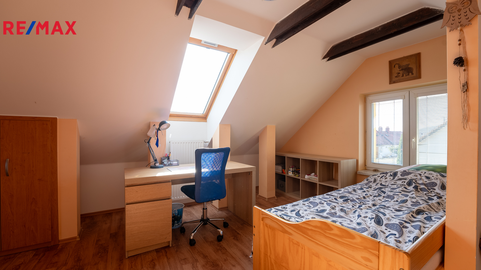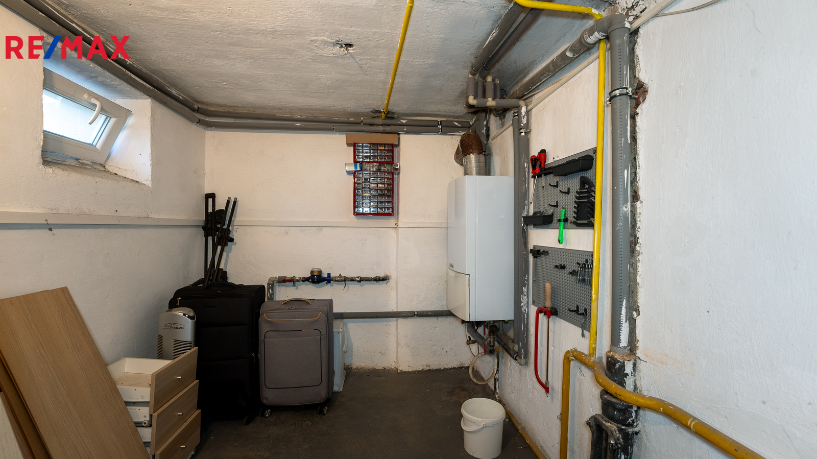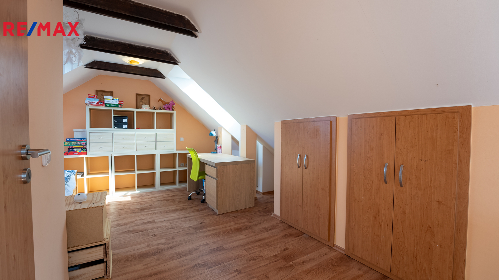Dispozice domu nabízí praktické uspořádání místností, přičemž velký podkrovní pokoj je ideální například jako dětský pokoj, herna nebo pracovna. V domě se nachází jedna koupelna a dvě WC, což zvyšuje komfort pro vícečlennou domácnost. Nemovitost je částečně podsklepená a nabízí tak další úložné či technické zázemí.