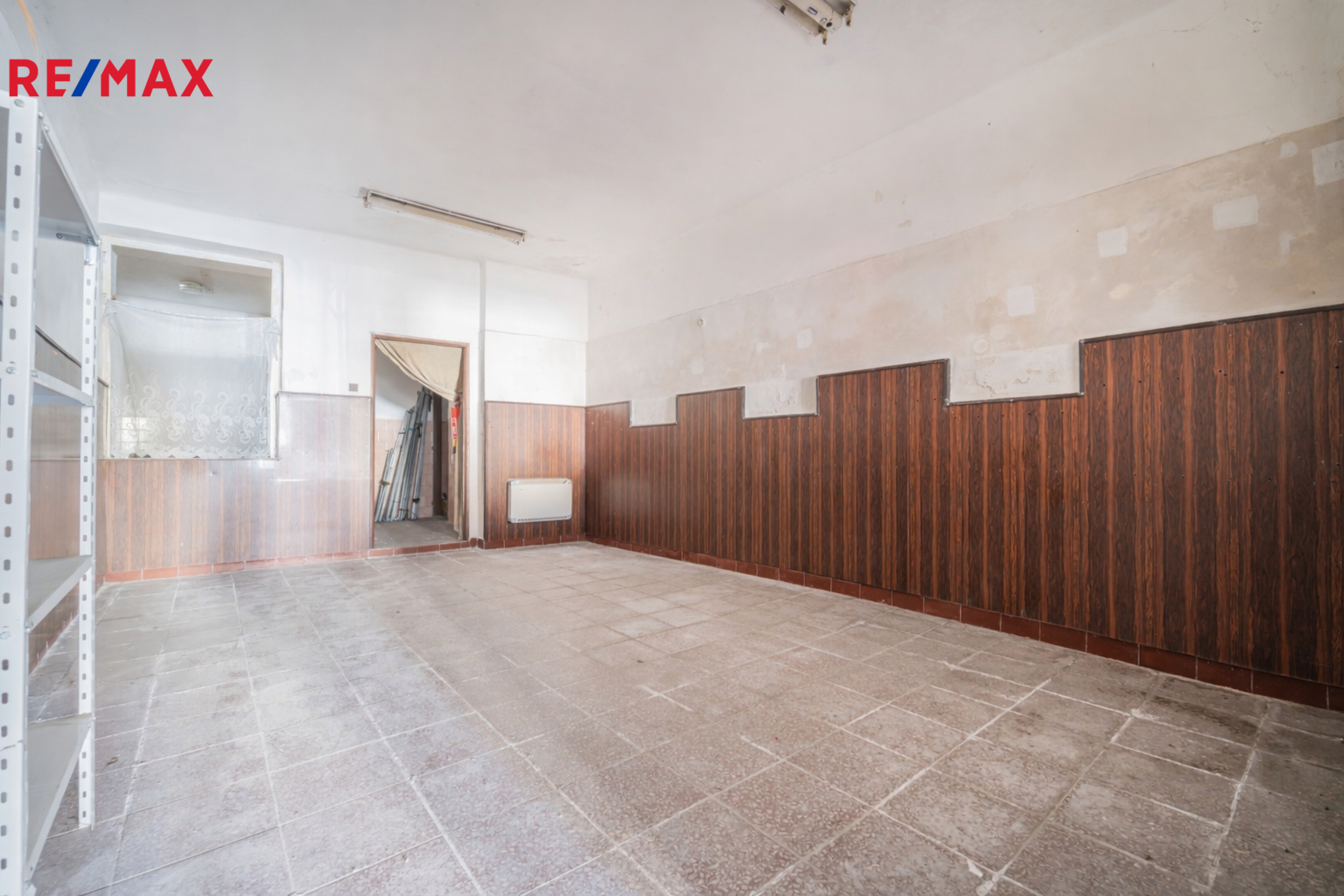 V přízemí se nacházejí dva obchodní prostory se samostatnými vstupy z ulice – menší a větší. K většímu prostoru náleží dva sklady, podzemní sklep a sociální zázemí jak pro zákazníky, tak pro personál. Prostory jsou v současnosti nevyužívané, po rekonstrukci mohou opět sloužit ke komerčnímu využití nebo být přizpůsobeny k bydlení.