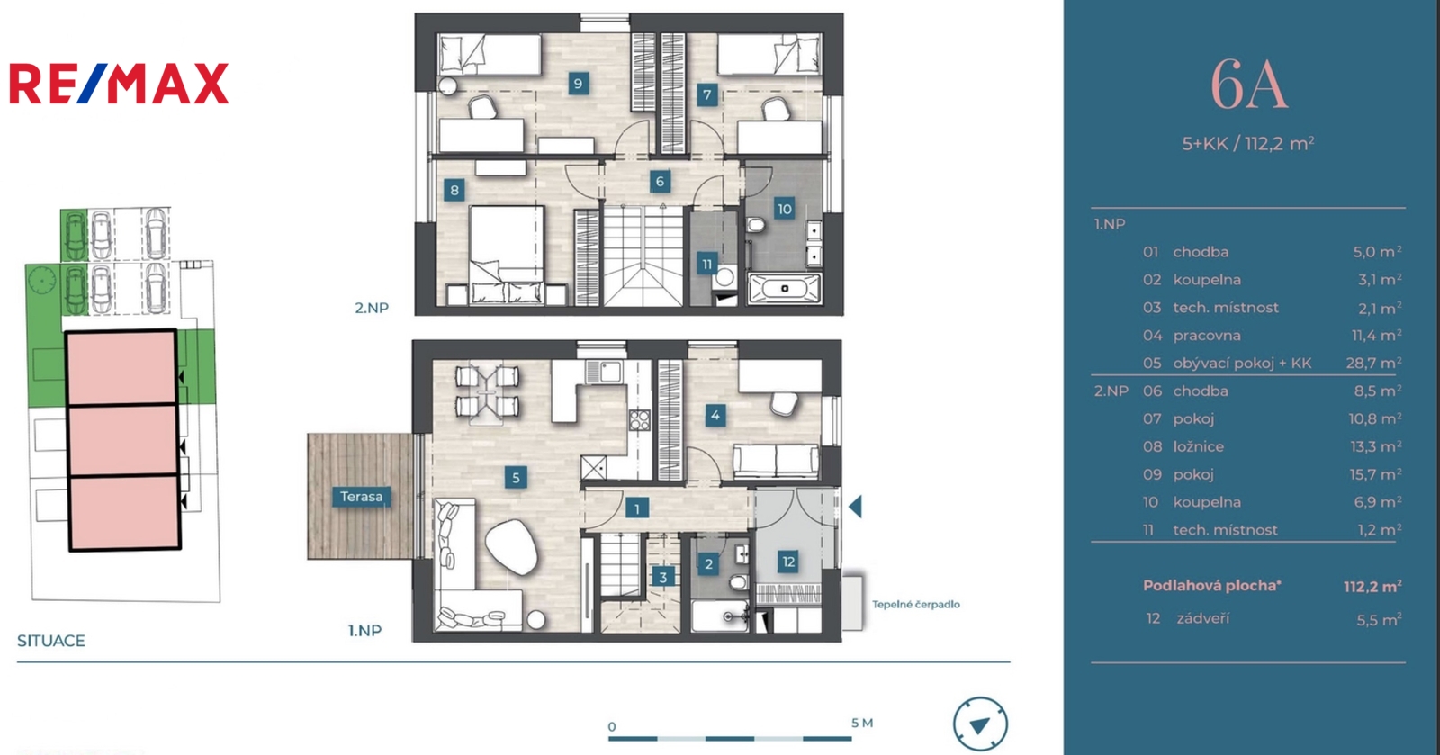 • dispozice 5+kk s podlahovou plochou 112.8 m²