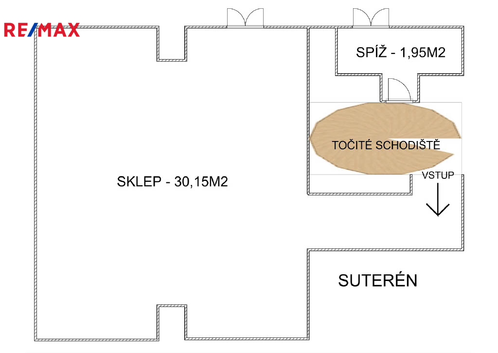 -Suterén – 1 prostorná místnost (ideální pro vinotéku, dílnu či hobby místnost)