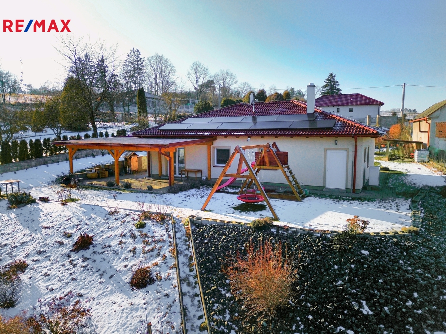 Dům je zateplený, ve velmi dobrém technickém stavu a připravený k okamžitému nastěhování. O tepelný komfort se stará tepelné čerpadlo s teplovodním podlahovým topením v celém domě, ohřev vody zajišťuje bojler Dražice 200 l. Energetickou soběstačnost podporuje fotovoltaická elektrárna o výkonu 10 kWh se záložním zdrojem a baterií 10 kWh. Přebytečná energie se ukládá nebo vrací do sítě, což se pozitivně promítá do velmi nízkých provozních nákladů kolem 3 000 Kč měsíčně. Energetická třída B.