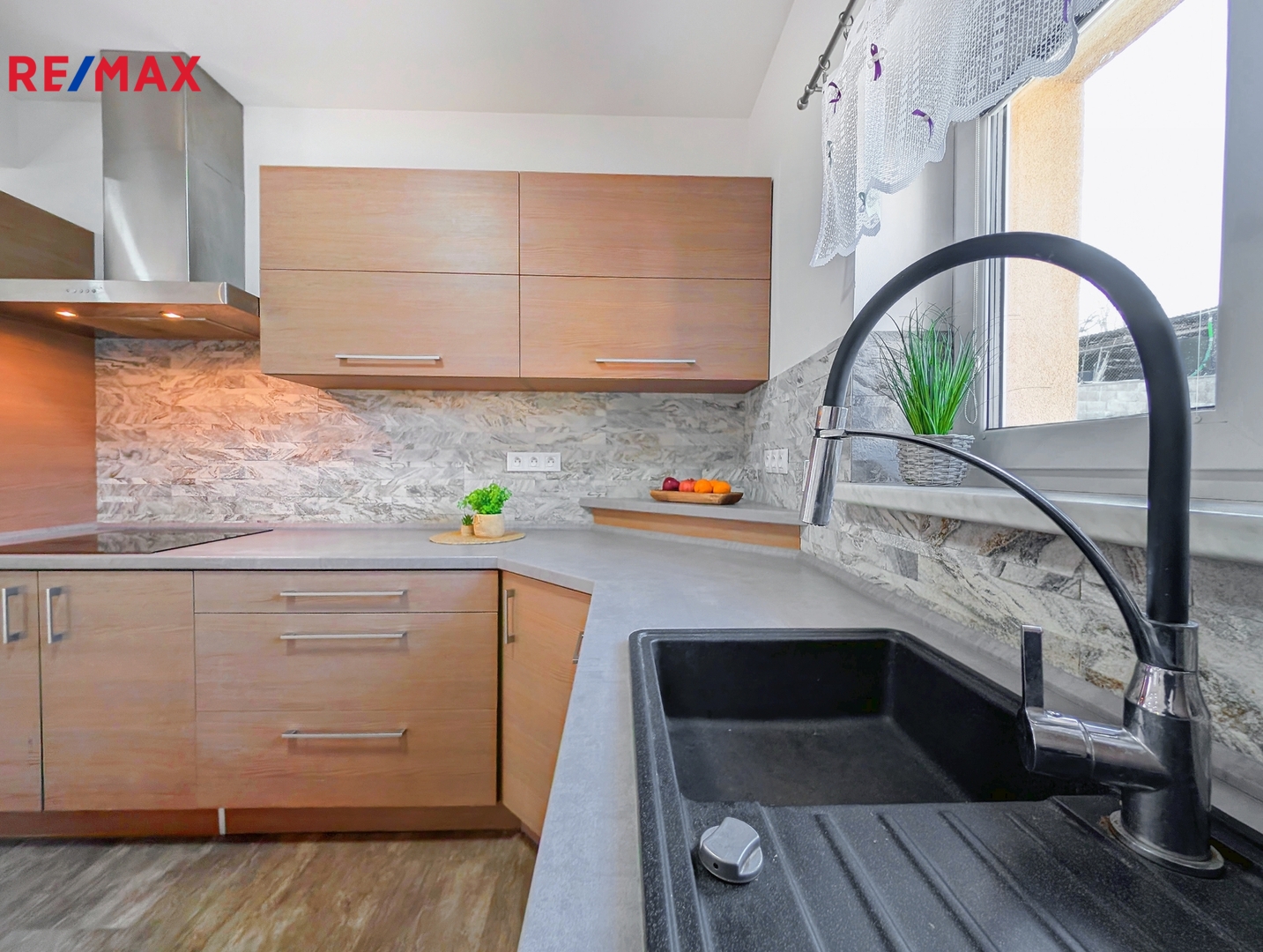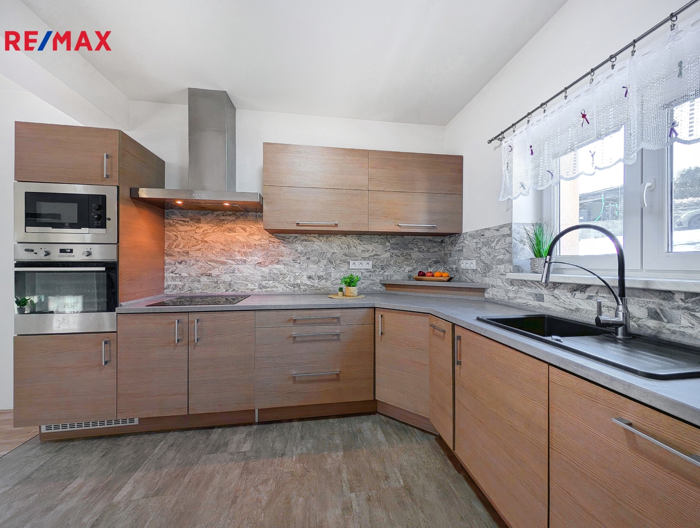 Součástí prodeje je kvalitní kuchyňská linka se spotřebiči, která zůstává součástí vybavení domu.