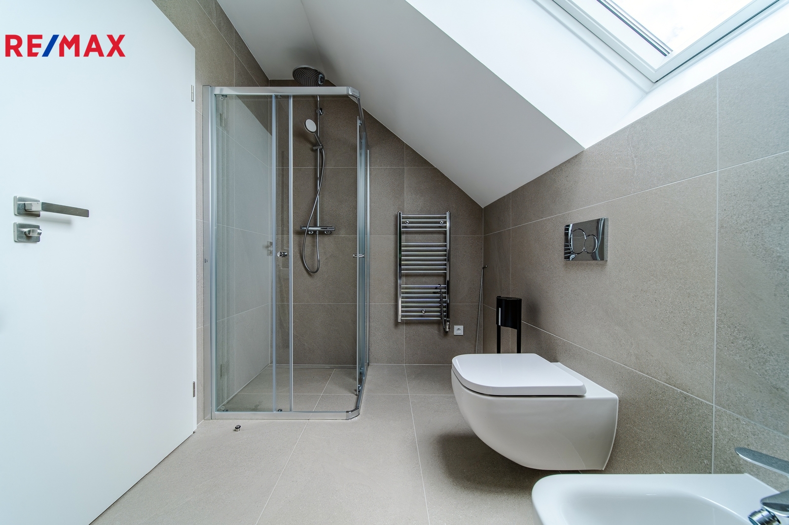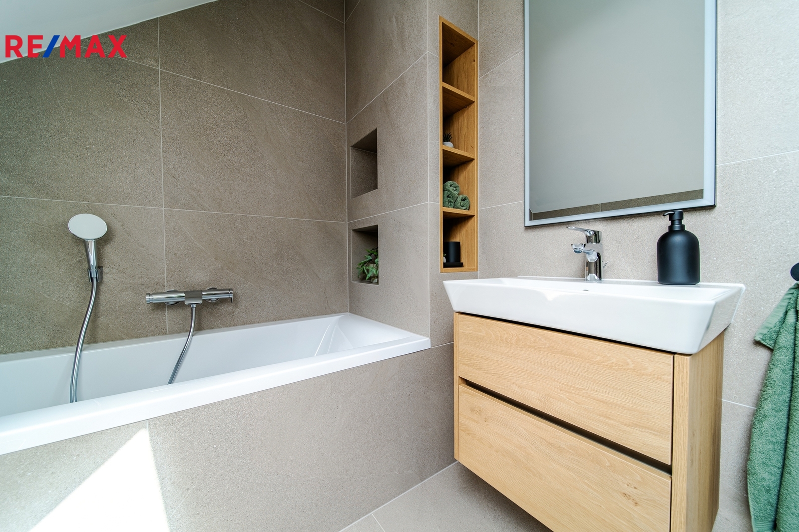 Koupelny vybavené kvalitními standardy značek Hansgrohe, Ideal Standard a Geberit.