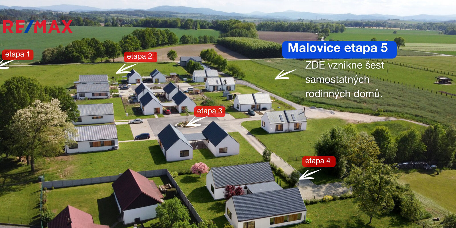 Dům se nachází v klidné obci Malovice, kde najdete školku, autobus. spojení, úřad, hřiště a krásnou přírodu s rybníky.