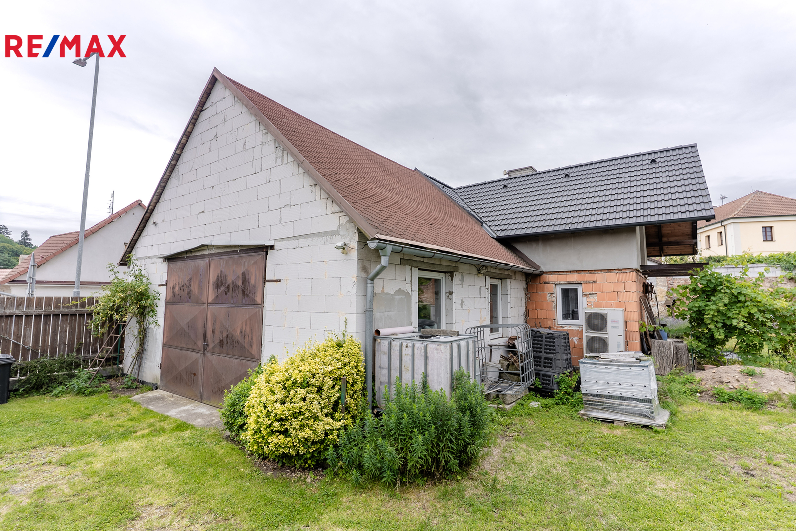 Součástí domu je velká garáž, dílna a technická místnost. Vytápění je zajištěno moderním tepelným čerpadlem Fujitsu, dům je napojen na obecní vodovodní řád a kanalizaci. Nová střecha byla instalována v roce 2021.