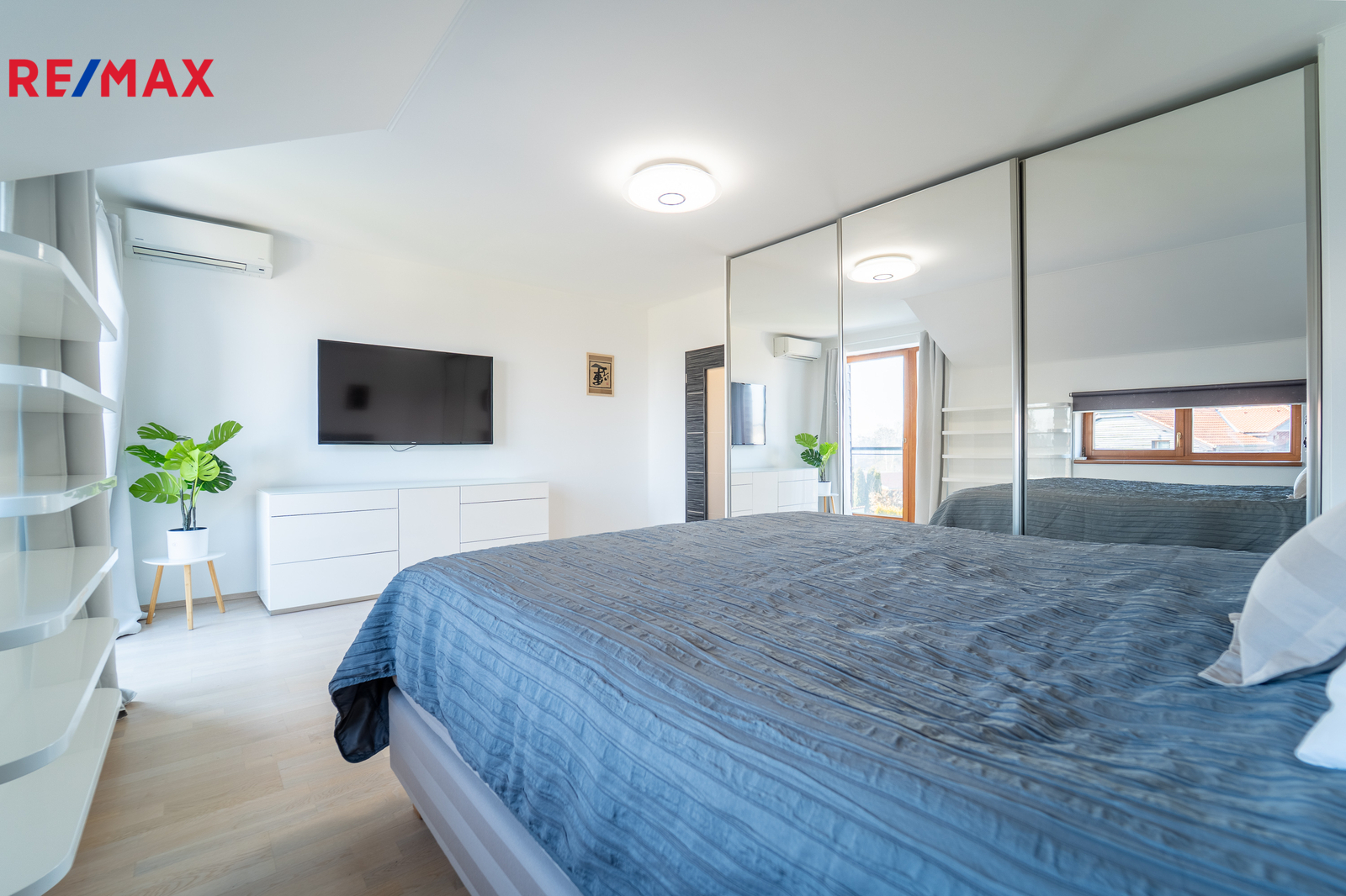 V každé ložnici a v obývacím pokoji je instalována klimatizační jednotka. Celý dům je osazen bezpečnostním systémem Jablotron.