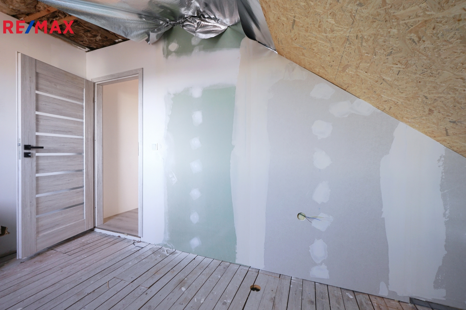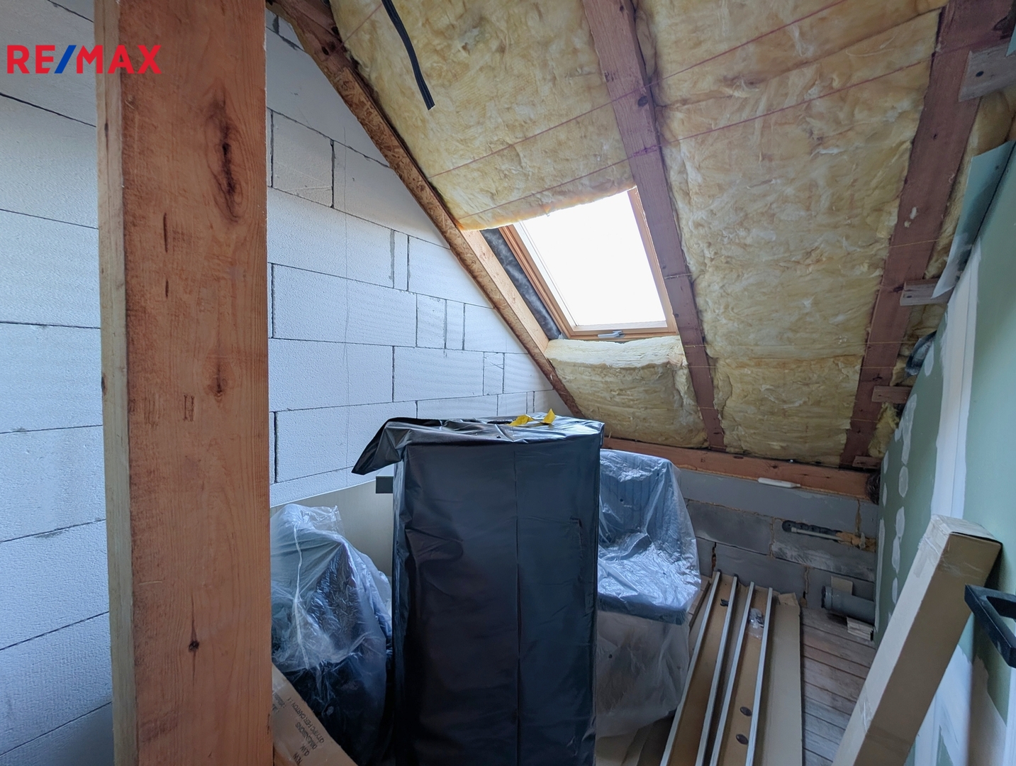 Horní patro je aktuálně kolaudováno jako půda a je ve fázi rekonstrukce na obytný prostor. V 2NP se nachází zateplení a jsou zde umístěna okna včetně těch střešních. Lze zde vybudovat až tři obytné místnosti a samostatnou koupelnu podle vlastních představ. Druhé patro nabízí možnost až 90 m².