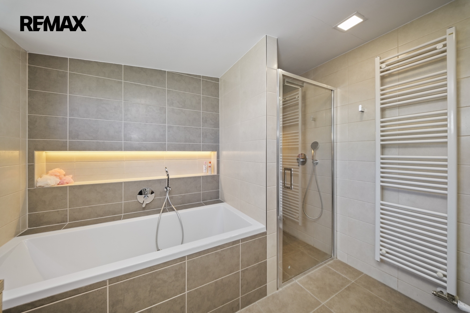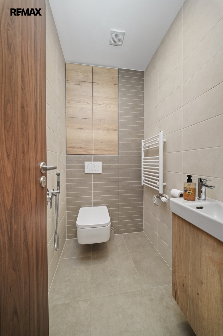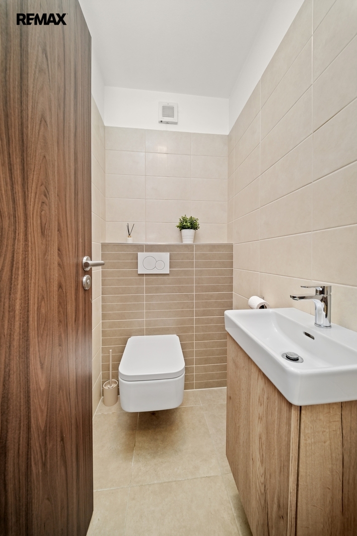 Na patře dále najdeme hlavní koupelnu s vanou i sprchovým koutem, samostatnou toaletu a technickou místnost.