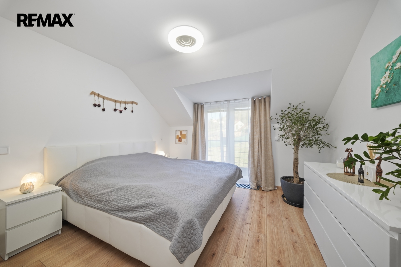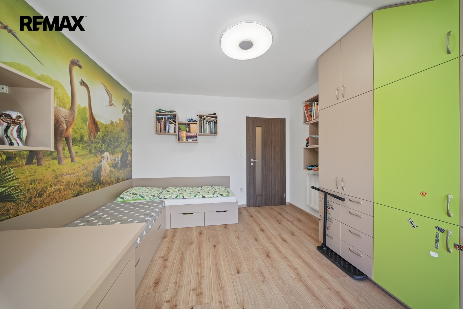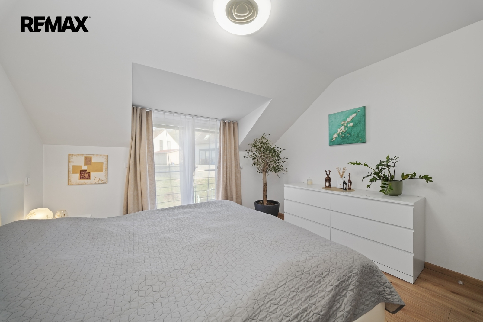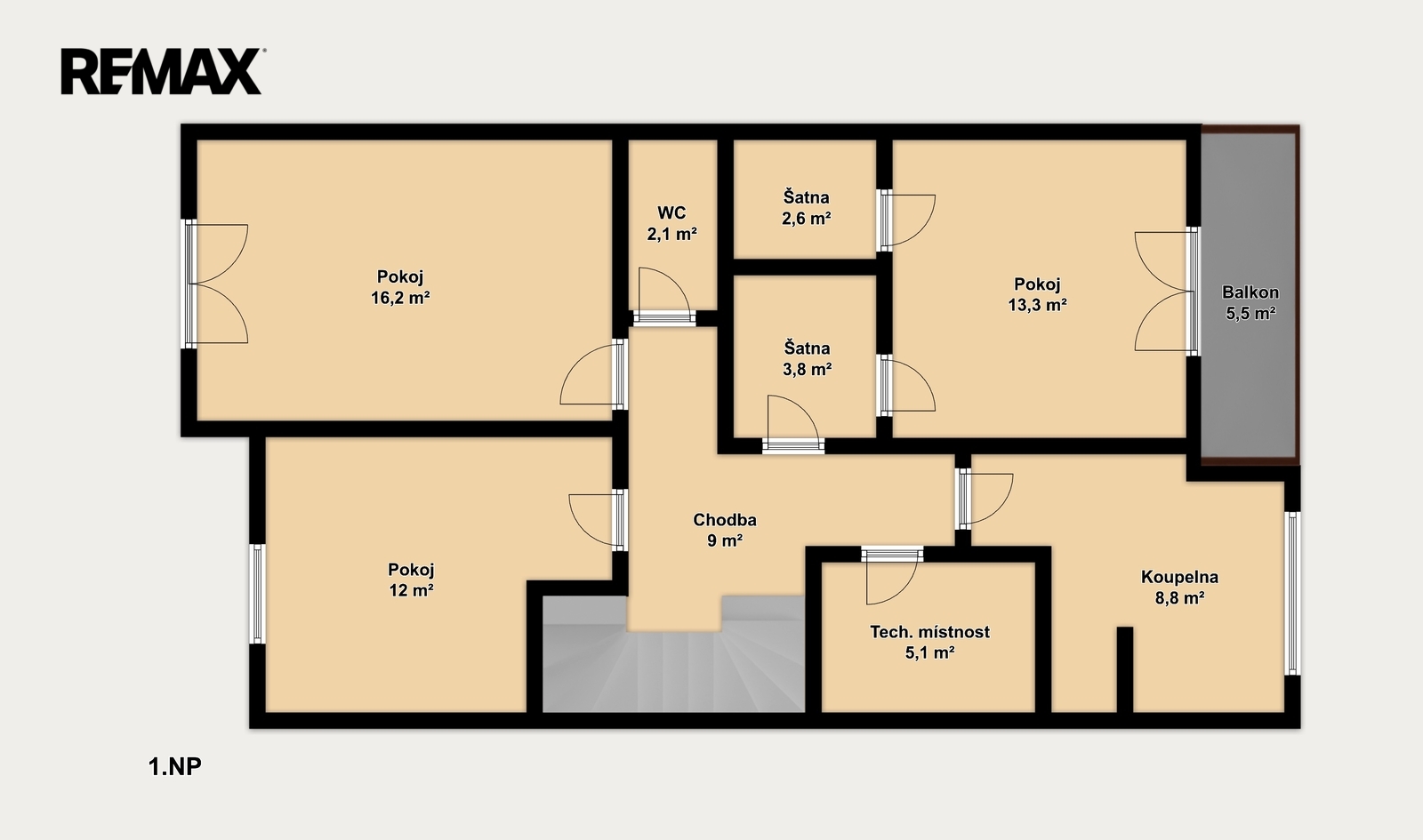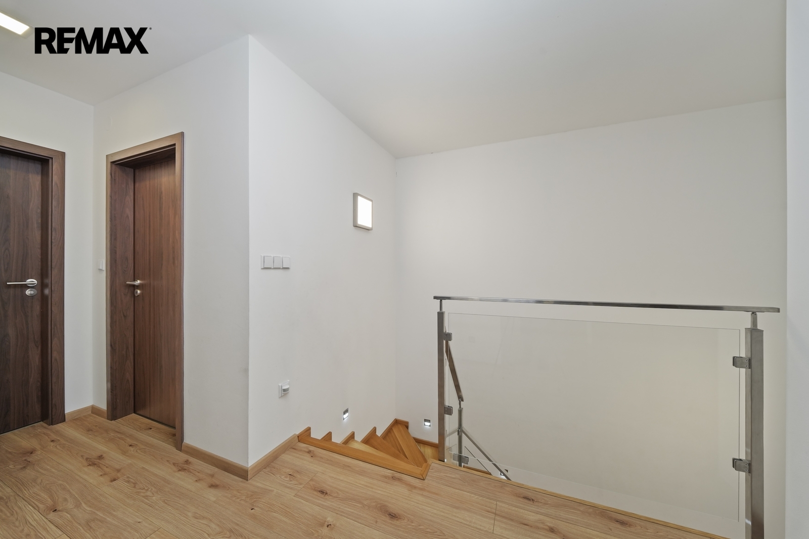 V patře domu se nachází dva dětské pokoje a hlavní ložnice, která je navržena jako soukromá zóna rodičů. Součástí je vlastní walk-in šatna, šatna s přípravou na druhou koupelnu i balkon, což nabízí možnost vytvoření komfortního apartmá dle vlastních představ.