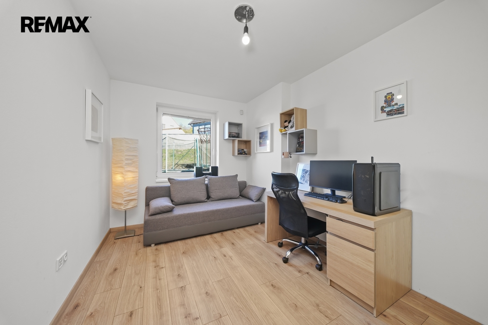 V přízemí dále nalezneme samostatný pokoj, který může sloužit jako pracovna či pokoj pro hosty a nechybí ani samostatná toaleta.