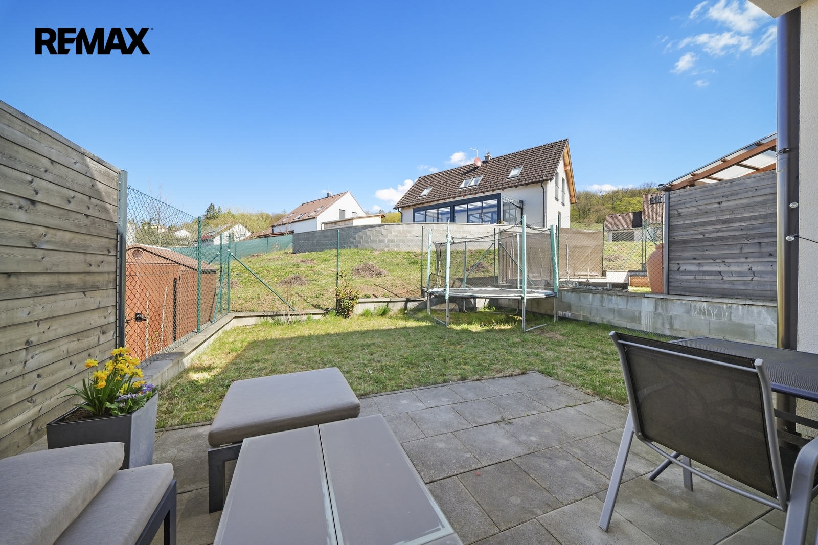 Na obytnou část navazuje terasa, která přímo vybízí k posezení u ranní kávy nebo večernímu odpočinku.