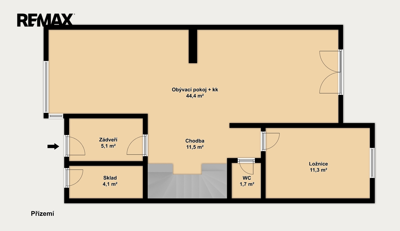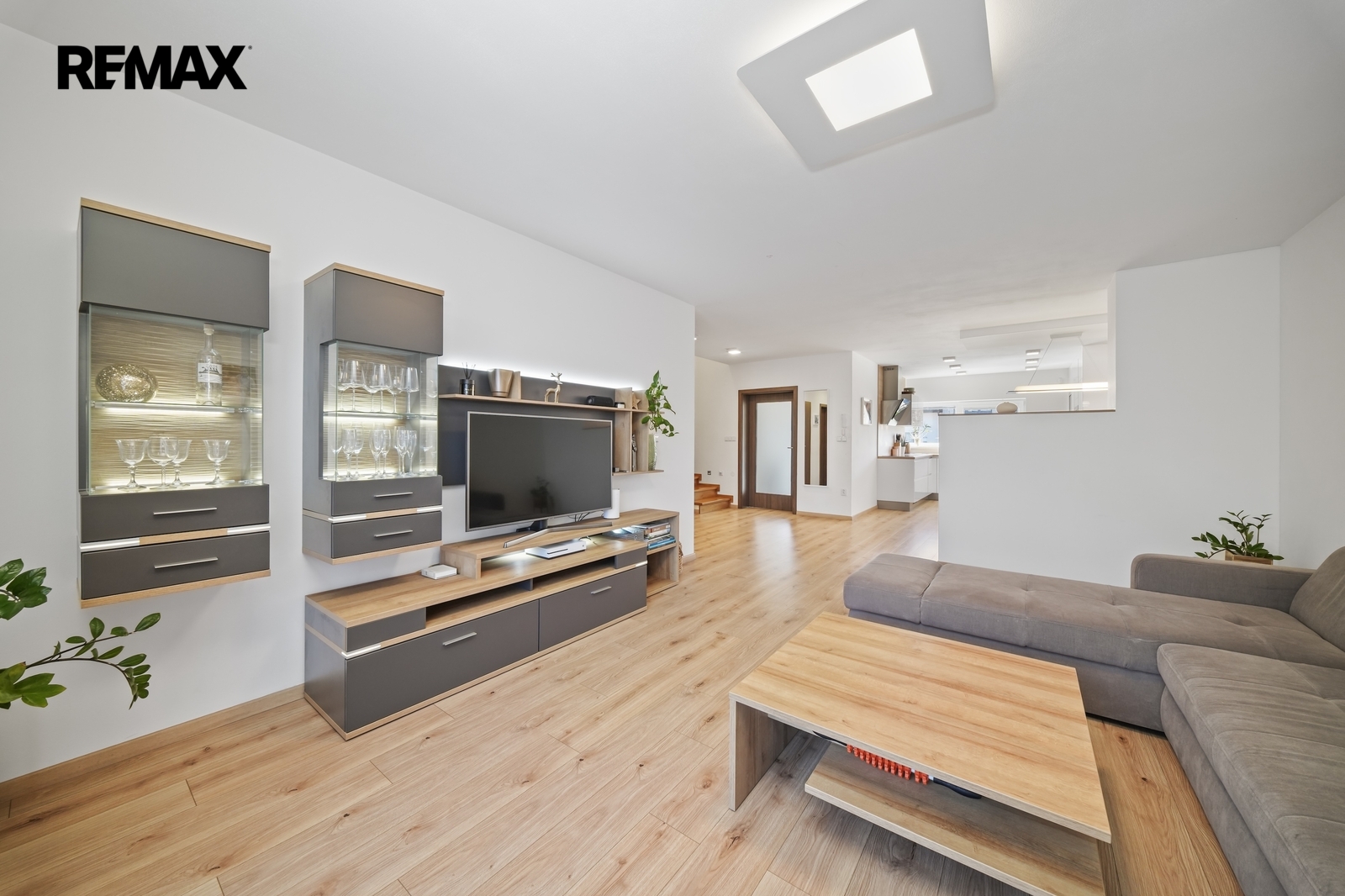 Dominantou přízemí je velkorysý obývací pokoj propojený s kuchyňským koutem. Tento prostor nabízí dostatek místa pro rodinný život, společné chvíle i setkávání s přáteli. Součástí je příprava na krb, který může být nejen designovým prvkem, ale i zdrojem příjemné atmosféry během zimních večerů.