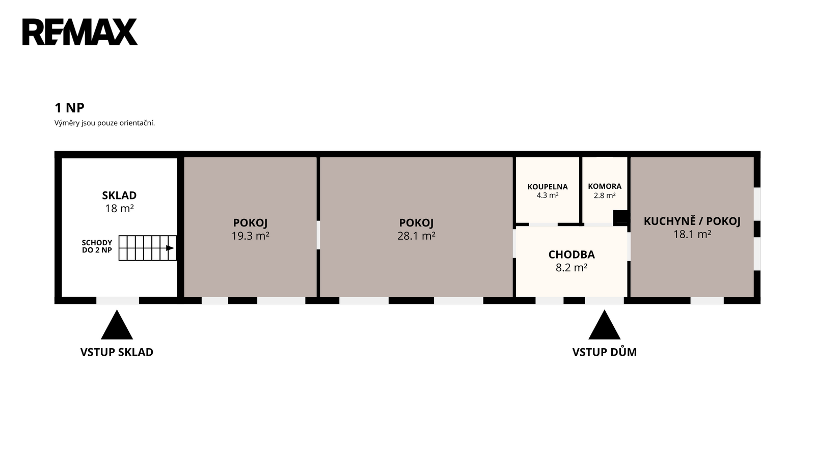 NP (99 m²): 81 m² obytný prostor, 18 m² sklad