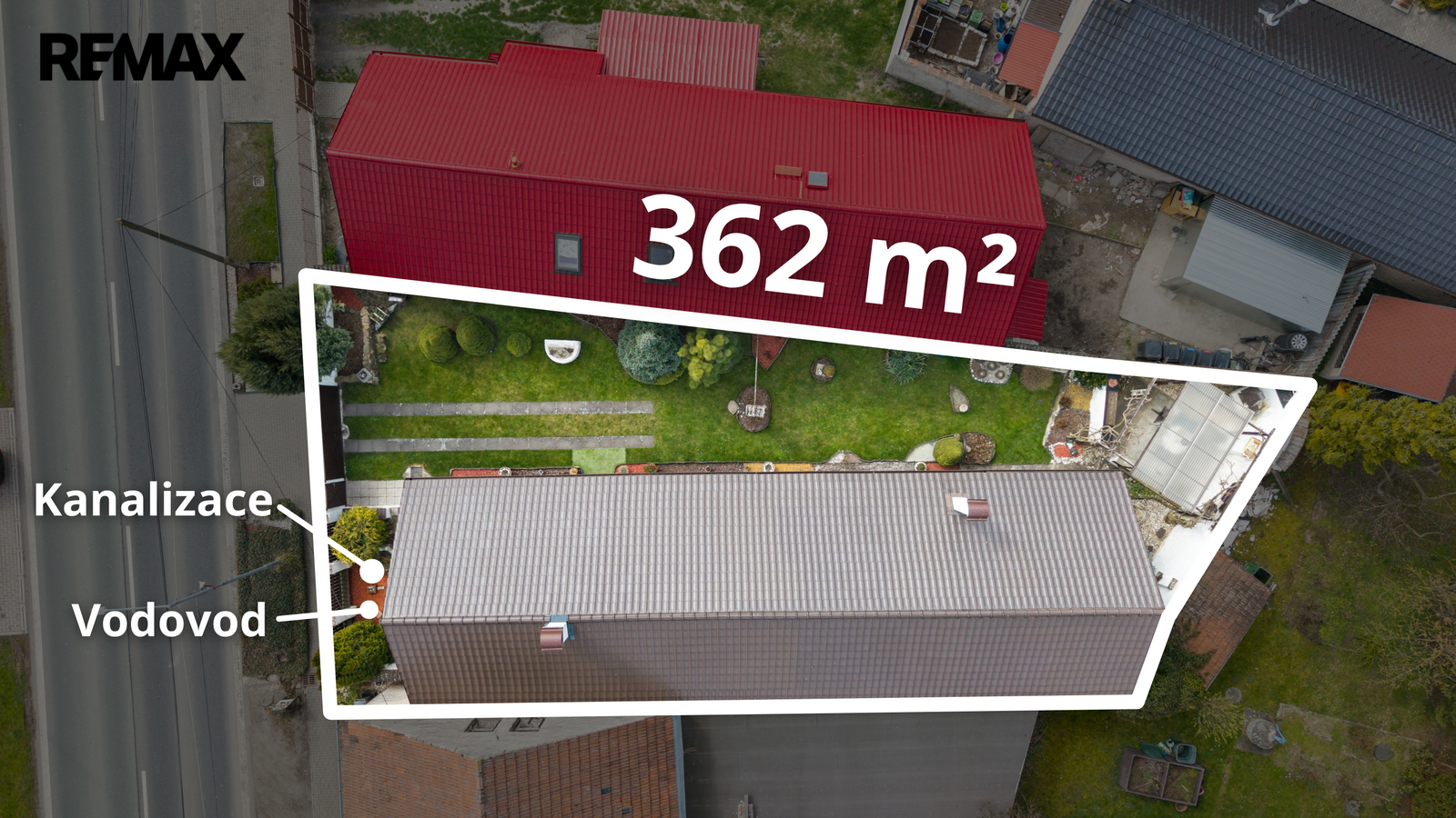 Dům stojí na pozemku o rozloze 362 m² a je napojen na elektřinu (třífázový jistič) i vlastní studnu. Na pozemku je zároveň přivedena kanalizace a obecní vodovod s osazeným vodoměrem, přičemž jejich napojení již bude na nových majitelích.