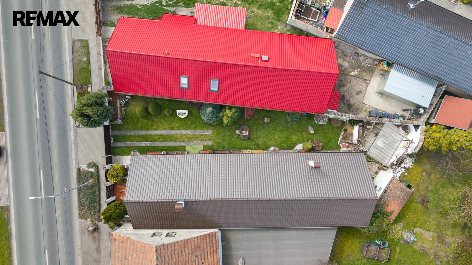 Součástí přízemí je také sklad o výměře dalších 18 m² se samostatným vstupem, ze kterého vede přístup do prostorného podkroví o velikosti cca 99 m². Díky vysokému stropu nabízí podkroví skvělý potenciál pro vybudování dalších pokojů a výrazné rozšíření současné dispozice domu.