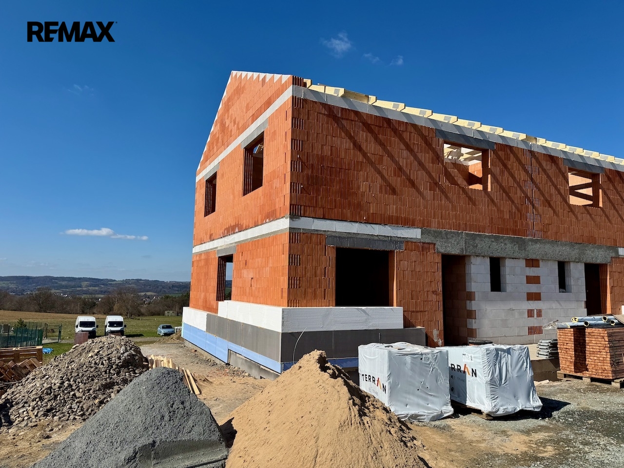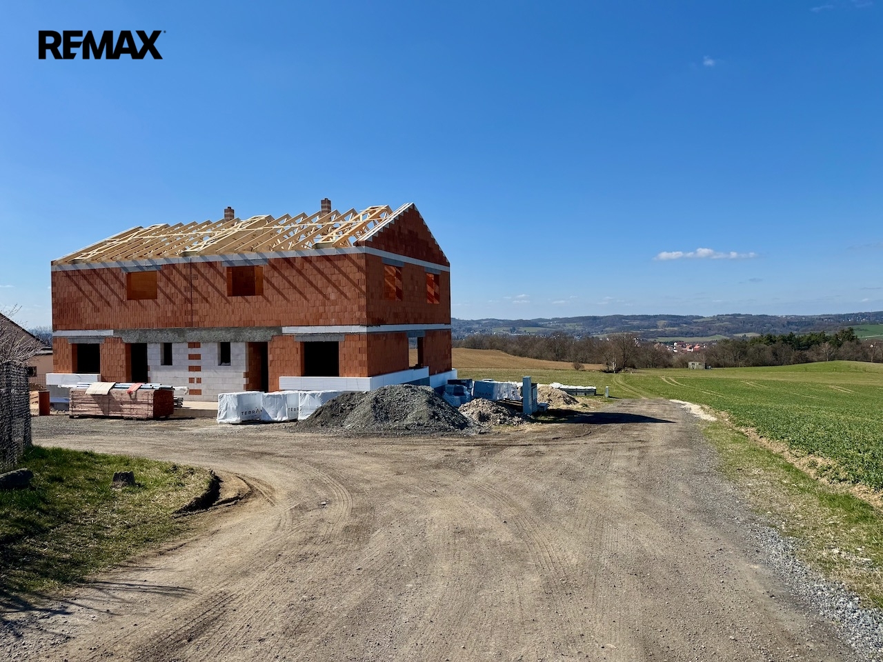 Cena je za dokončený dům k nastěhování! Konkrétně tato kvalitní novostavba rodinného domu (polovina dvojdomu) 4kk s terasou se nachází v klidné slepé ulici v Ondřejově v části obce Turkovice 25 minut od Prahy, kde čistá příroda a klid na Vás dýchá na každém kroku. Právě tento krásný nízkoenergetický dům nabízí daleké výhledy do kraje z každého okna i terasy - a to se musí vidět. Příjezdová cesta bude ze zámkové dlažby.