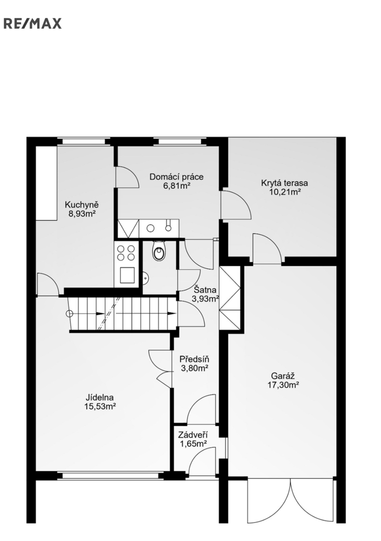 - vestavěná garáž o velikosti 17 m²