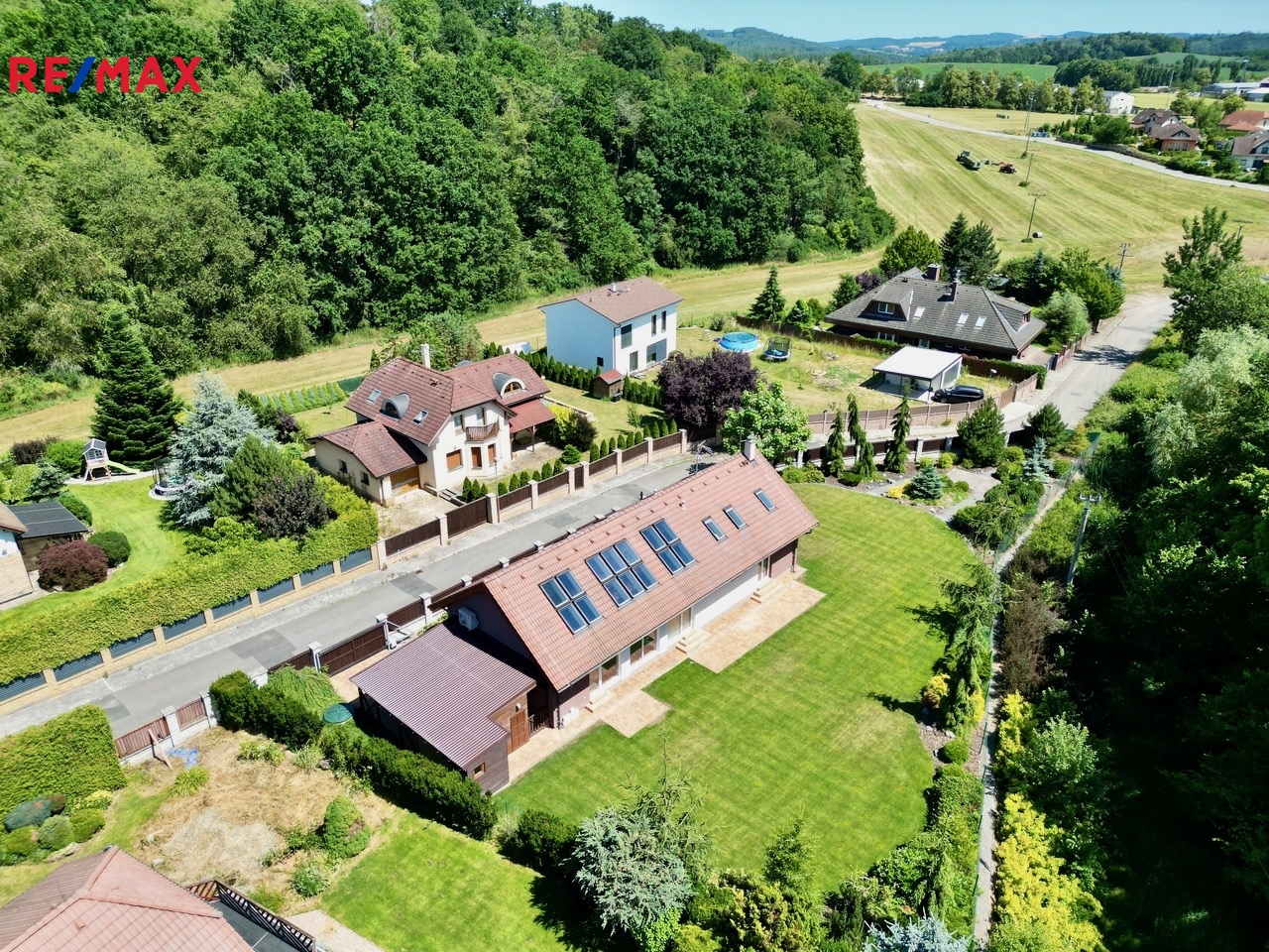Moderní a velkorysé pojetí novostavby podtrhuje velký, slunný a rovinatý pozemek o velikosti 1241 m2 v klidné slepé ulici. Výhledy jsou jen do zeleně - bez sousedů. Nachází se v klidné slepé ulici. Místo je to pro každého, kdo chce žít v souladu s přírodou.
