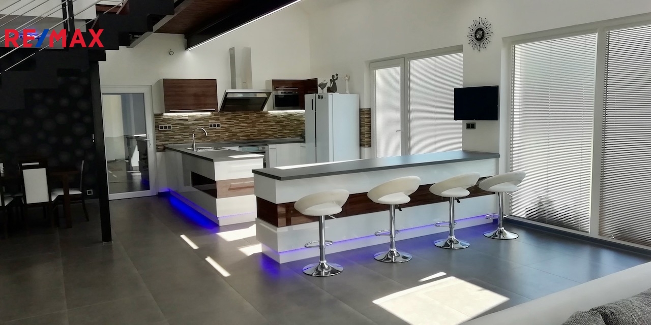 Zveme Vás na nezávaznou prohlídku jedinečně řešeného nového domu, který je ideálně propojený s okolní přírodou. Exkluzivitu nabídky umocňuje architektonické řešení interiéru - dům o užitné ploše 200 m2 je vzdušný a krásně prosvětlený. Srdcem domu je velký obývací pokoj s kuchyní a jídelnou o velikosti 92 m2, nad kterým je ochoz, který lze užívat např. jako pracovnu.