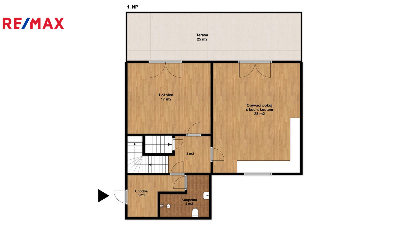 Dispozice domu zahrnuje prostornou terasu, na kterou se vchází z hlavní místnosti a ložnice. Kuchyňská linka není součástí prodeje a tak má nový majitel prostor k realizaci svých představ. V patře se nachází dva neprůchozí pokoje, což zajišťuje dostatek soukromí pro všechny členy rodiny. Na každém podlaží je toaleta a koupelna, buď se sprchovým koutem, nebo s vanou.