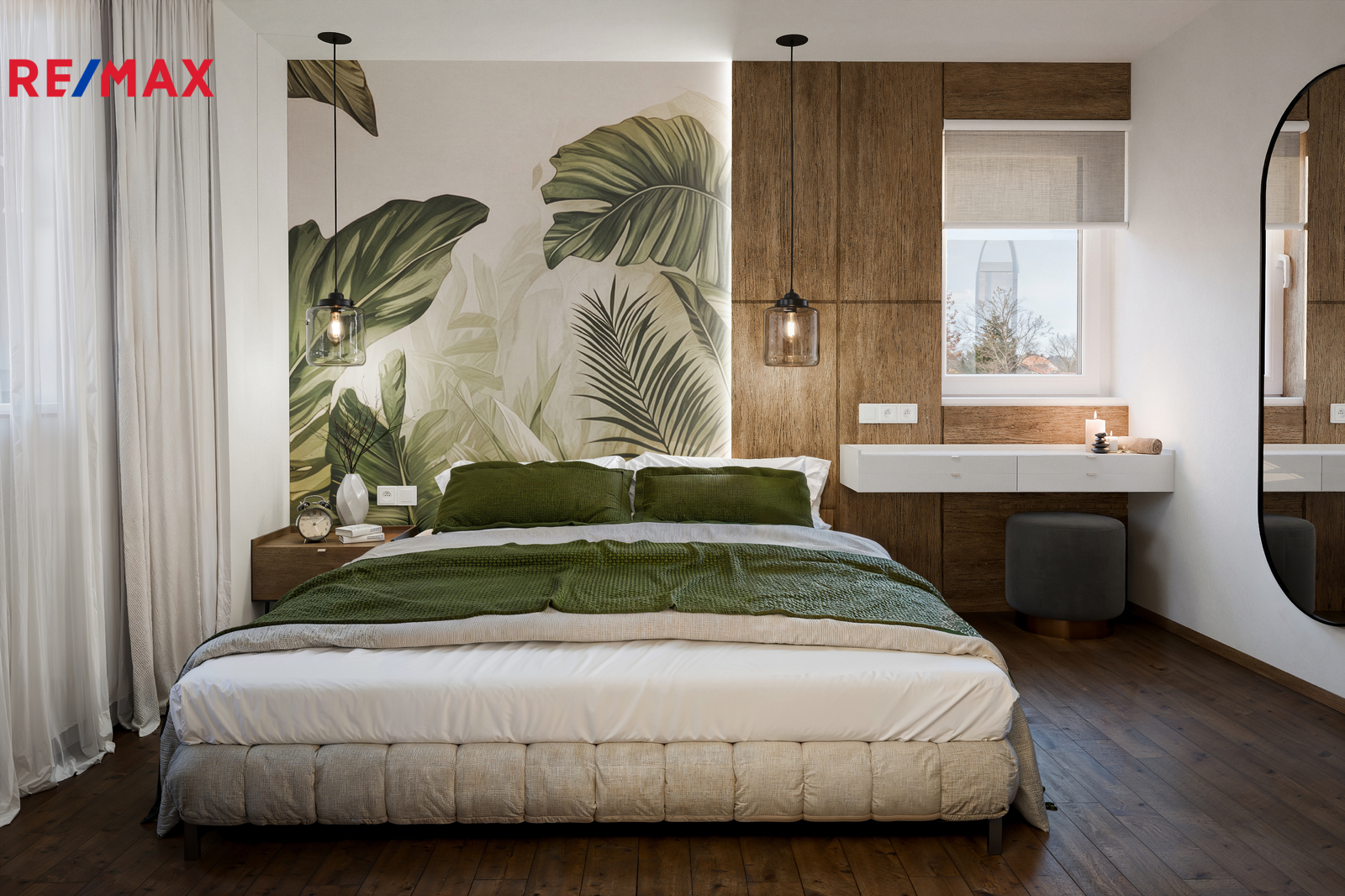 Domy v horní části projektu s plochou 95,73 m² a dispozicí 4+kk nabízí vzdušné a harmonické bydlení. Velká okna propojují interiér s přírodou a vpouštějí dovnitř spoustu denního světla. Při vstupu do domu vás přivítá prostorné zádveří s čisticí zónou, technická místnost s WC, která nabízí dostatek místa. Srdcem domu je otevřený obývací prostor, propojený s kuchyňským koutem a jídelnou. Dům nabízí přímý vstup na dřevěnou modřínovou částečně krytou terasu s nádherným výhledem. Horní patro je oázou klidu a soukromí. Tři neprůchozí pokoje a hlavní koupelna jsou navrženy tak, aby vyhovovaly všem potřebám klientů.