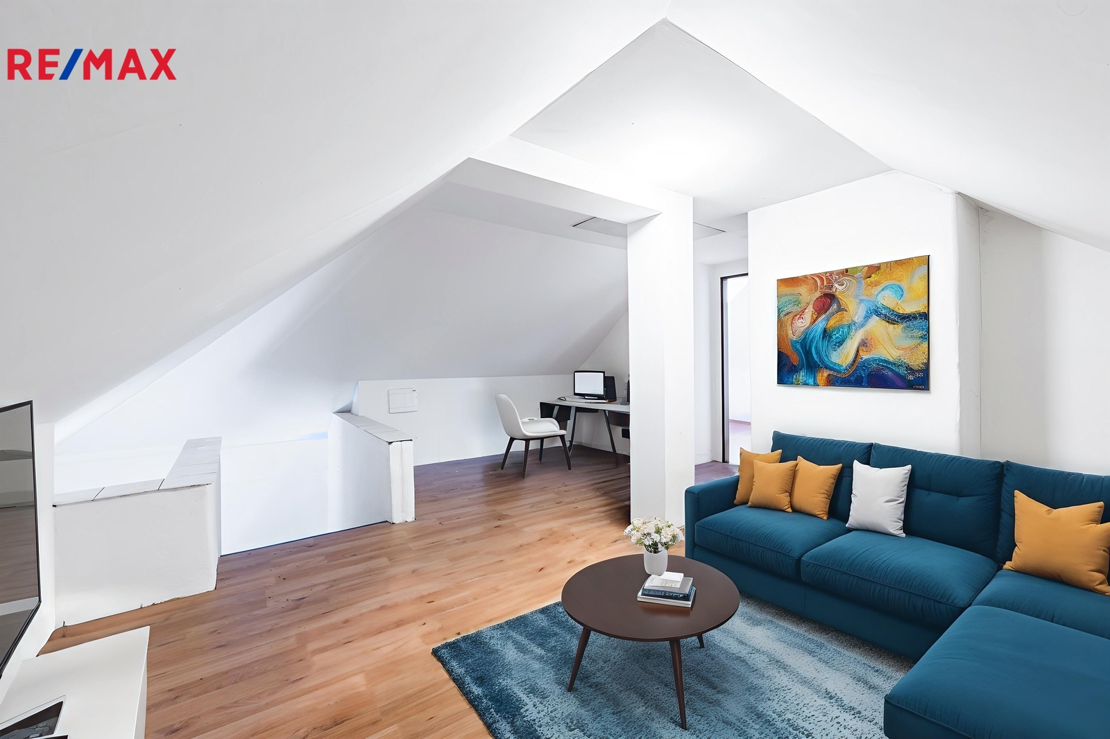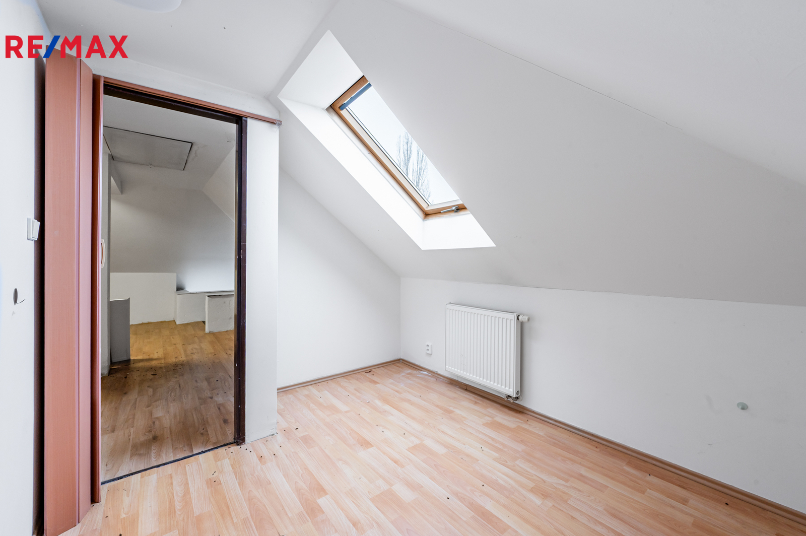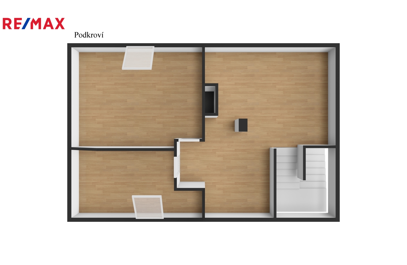 3.NP: obytné podkroví s otevřeným prostorem navazujícím na schodiště a dvěma menšími pokoji