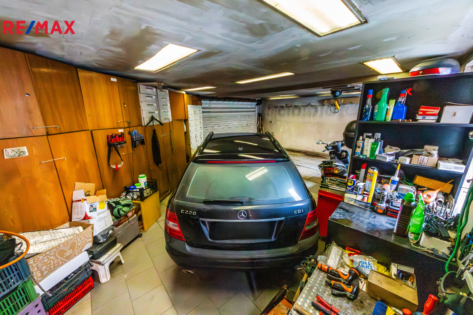 Na hranici pozemku se nachází samostatná garáž pro dva vozy s dostatkem úložného prostoru.