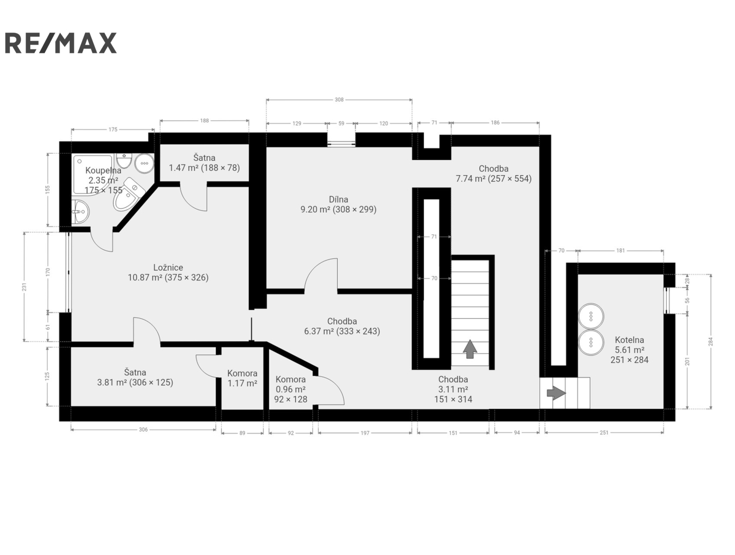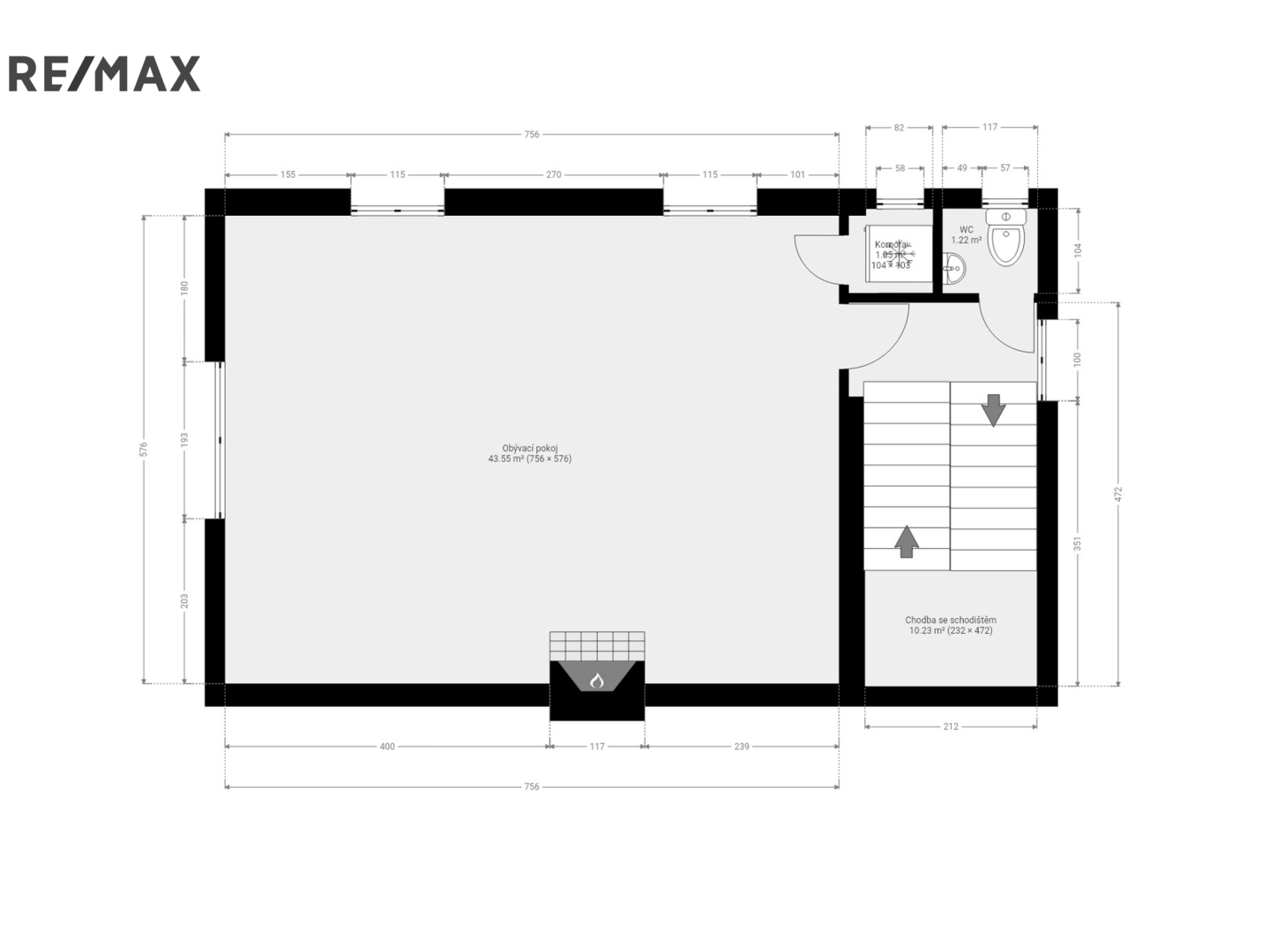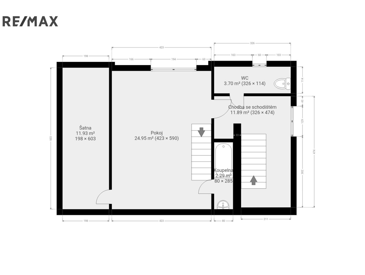 2. NP – prostorný obývací pokoj s kuchyňským koutem, komora, samostatná toaleta
