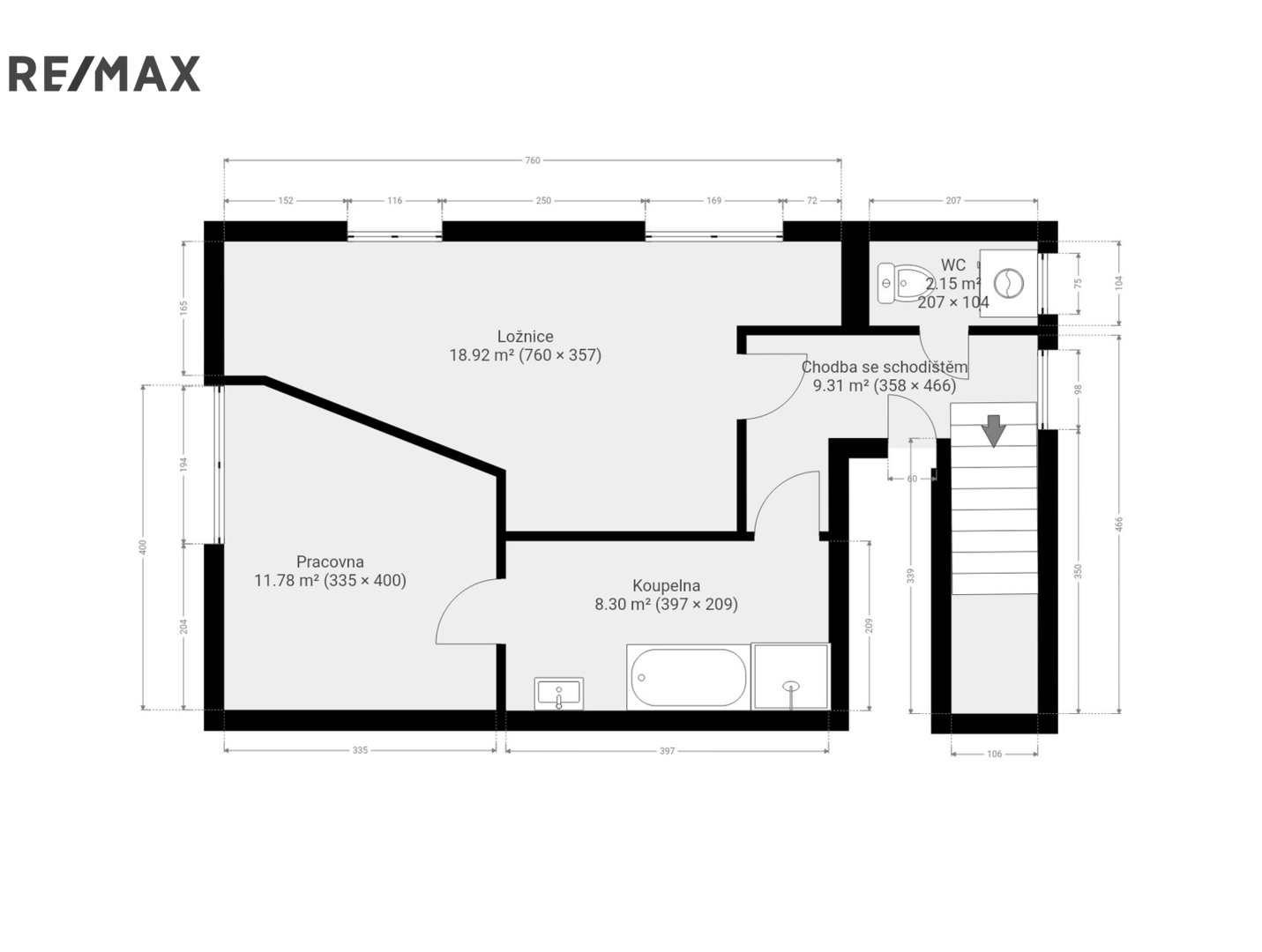 1. NP – ložnice, pracovna, koupelna s vanou, samostatná toaleta