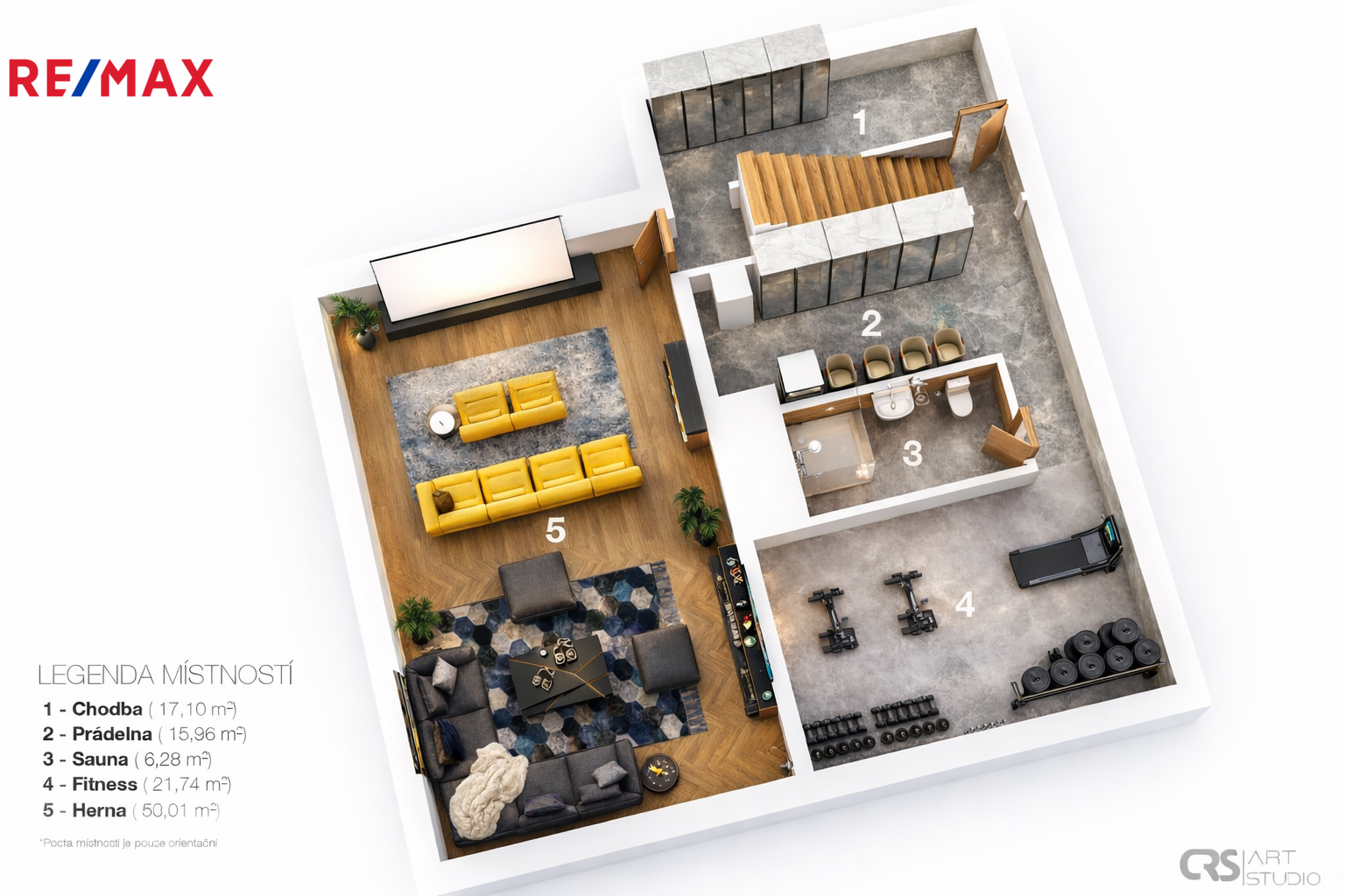 Dispozice na třech podlažích je praktická i pro kombinaci funkcí (rodinné bydlení + práce, dlouhodobé/korporátní ubytování, vícegenerační režim apod.).