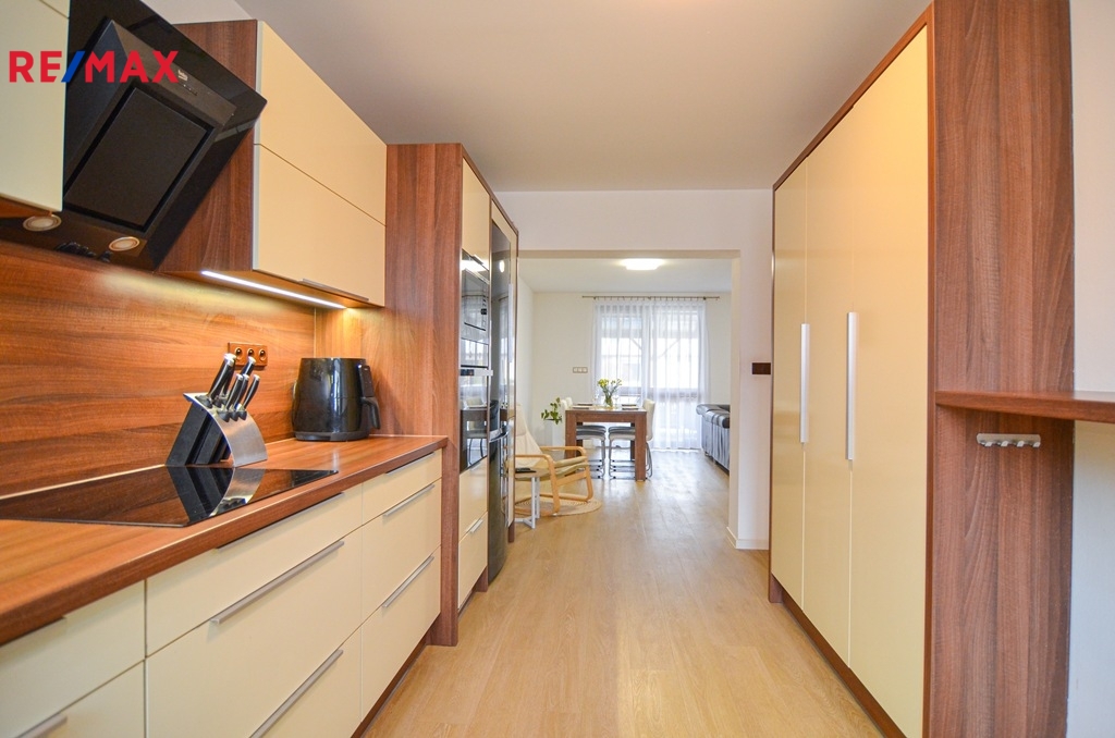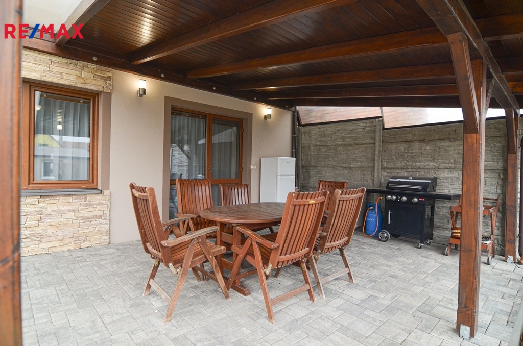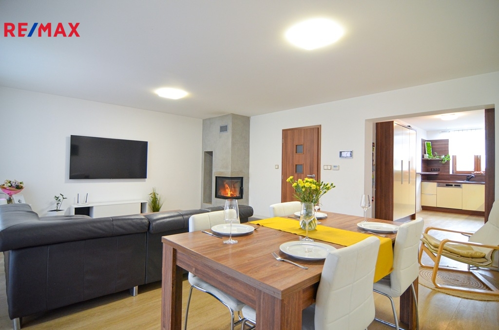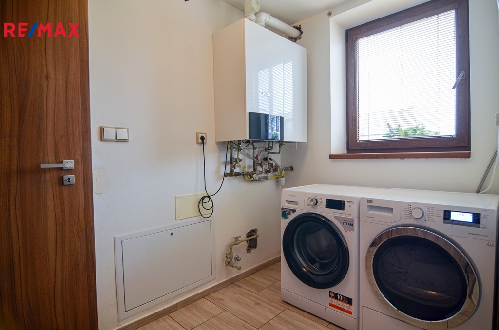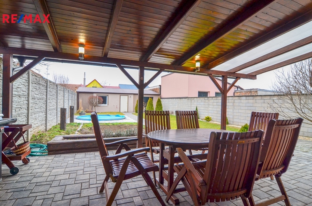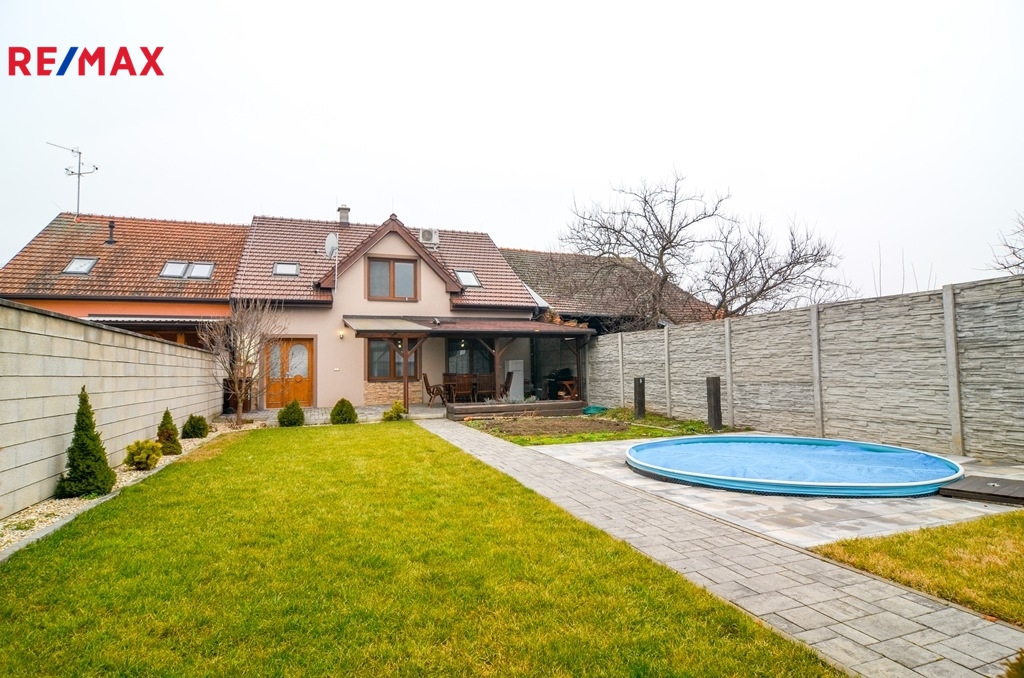 Dům nabízí moderní a komfortní bydlení s dostatkem soukromí, úložných prostor i zázemím pro rodinu s dětmi. Velkou výhodou je propojení obytné části se zahradou a bazénem, což vytváří ideální prostor pro relaxaci i rodinné chvíle. O vytápění domu se stará plynový kombinovaný kotel.