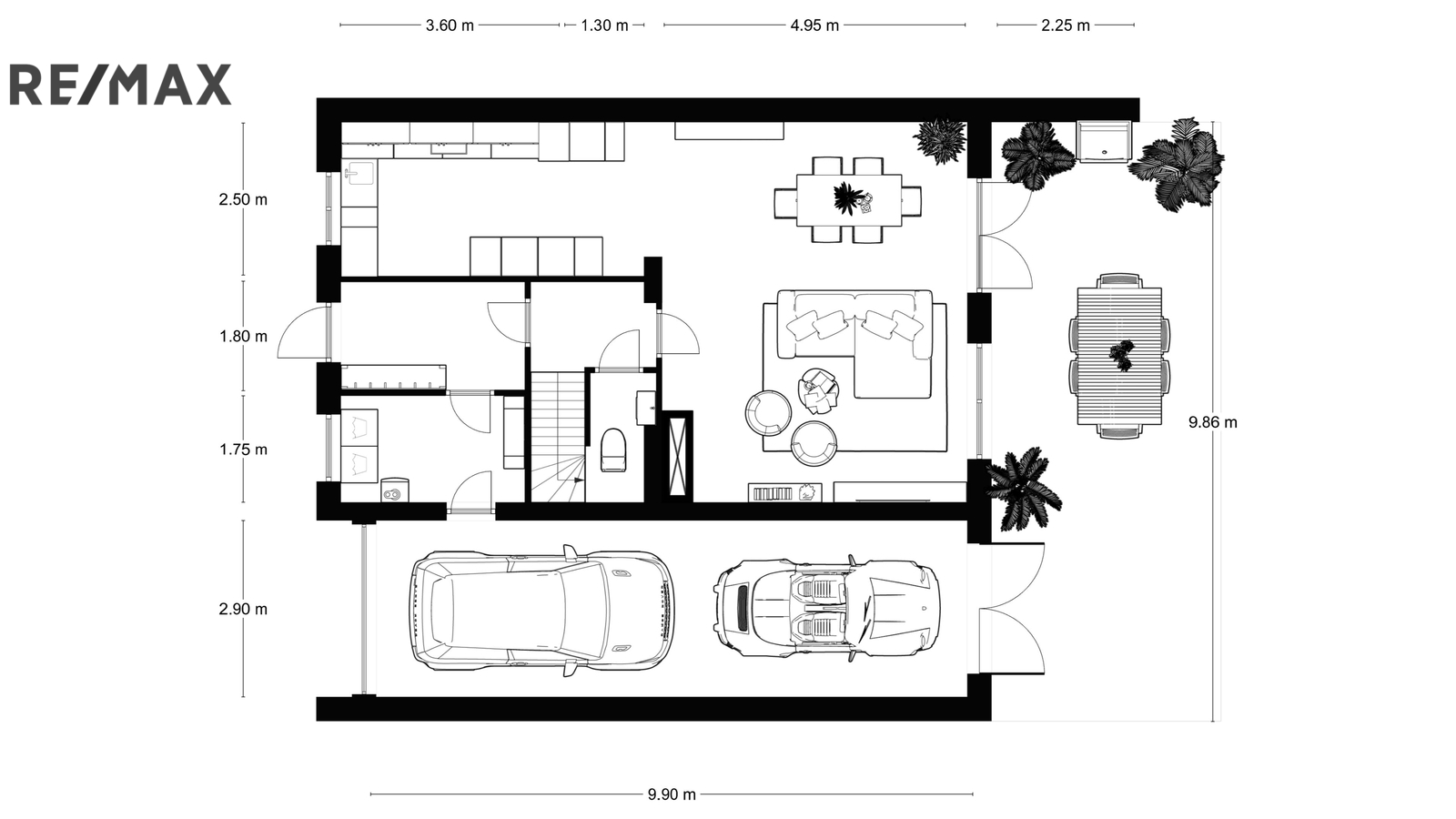Z obývacího pokoje je velkorysý vstup na terasu a do zahrady, kde se nachází bazén a v zadní části pozemku také kůlna / zahradní sklad pro uložení potřeb a technického zázemí.