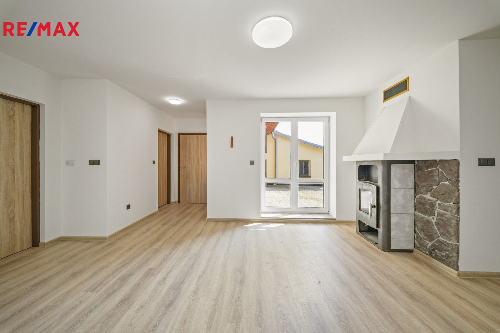 O vytápění domu se stará elektrický kotel, alternativně je možné využít také krb napojený na teplovodní radiátory. Komín je nově vyvložkovaný a má provedenou revizi, což zajišťuje bezproblémový provoz.