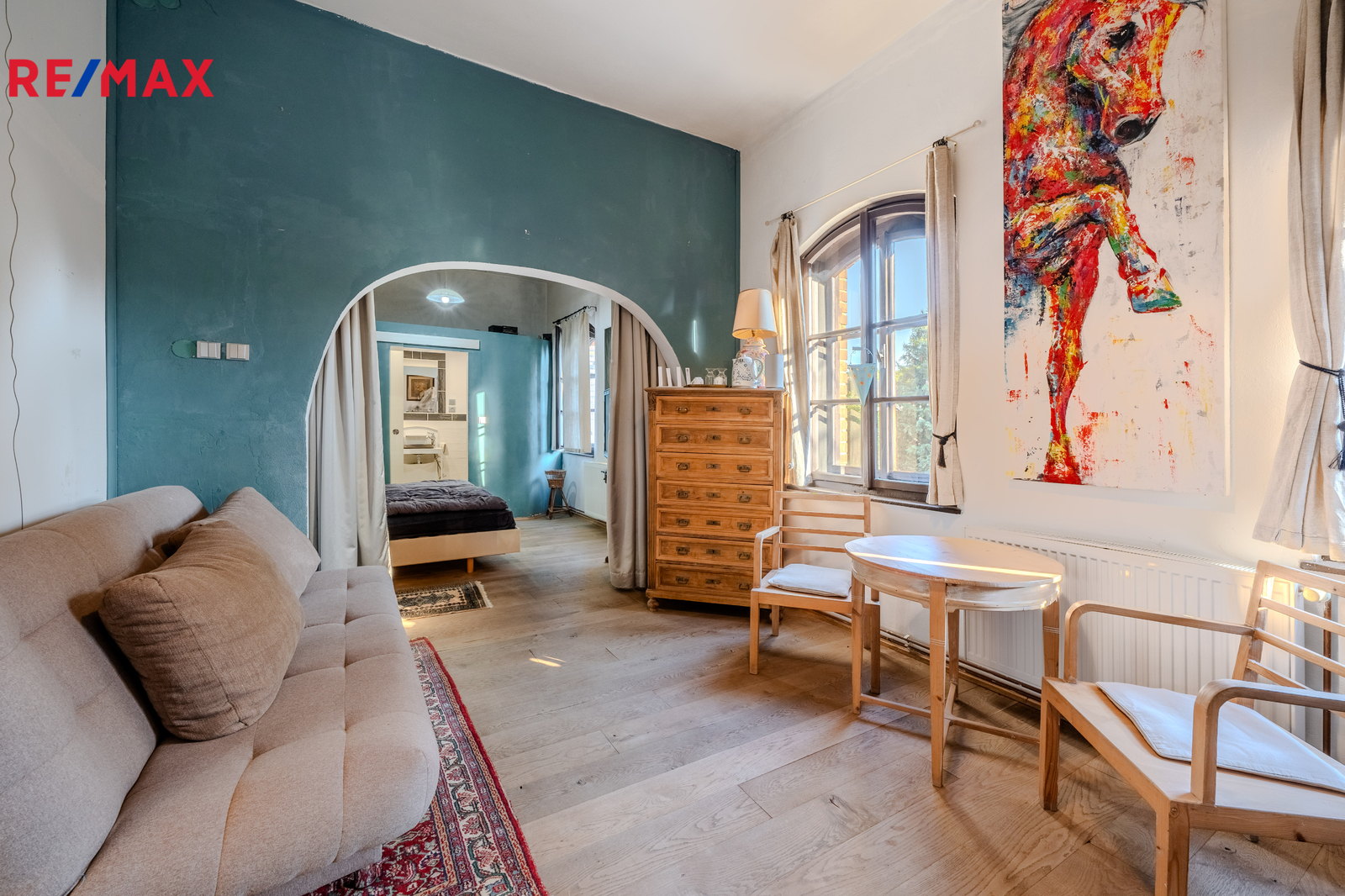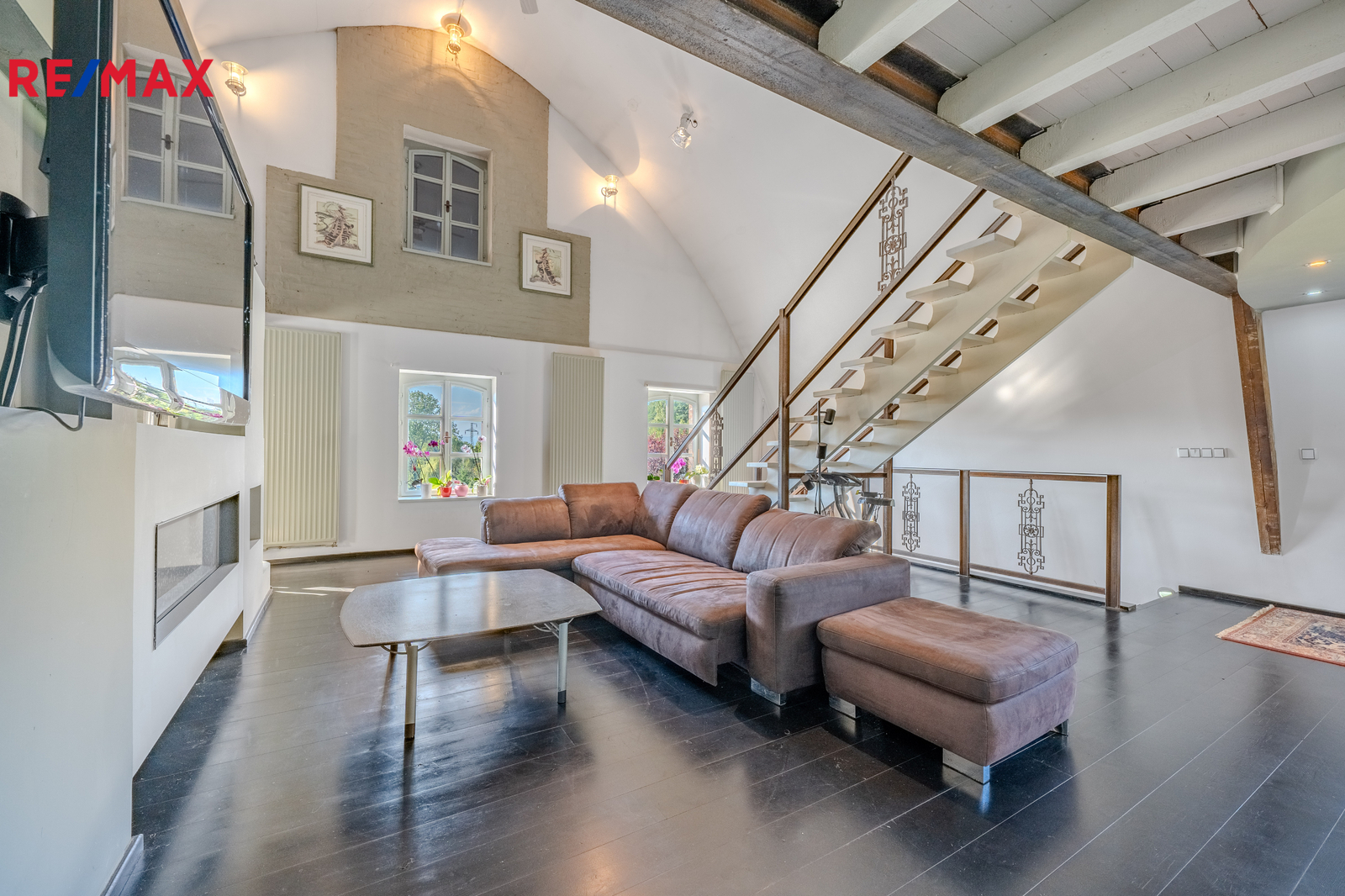Hlavní budova slouží jako luxusní mezonetový byt s přímým vstupem na zahradu a do stájí. Byt je velmi prostorný, moderně řešený a rozkládá se ve třech podlažích. Současná dispozice umožňuje další rozšíření obytné části podle individuálních potřeb nového majitele. Navíc je zde k dispozici samostatná obytná jednotka, která může sloužit jako pokoj pro hosty či zázemí pro rodinu.