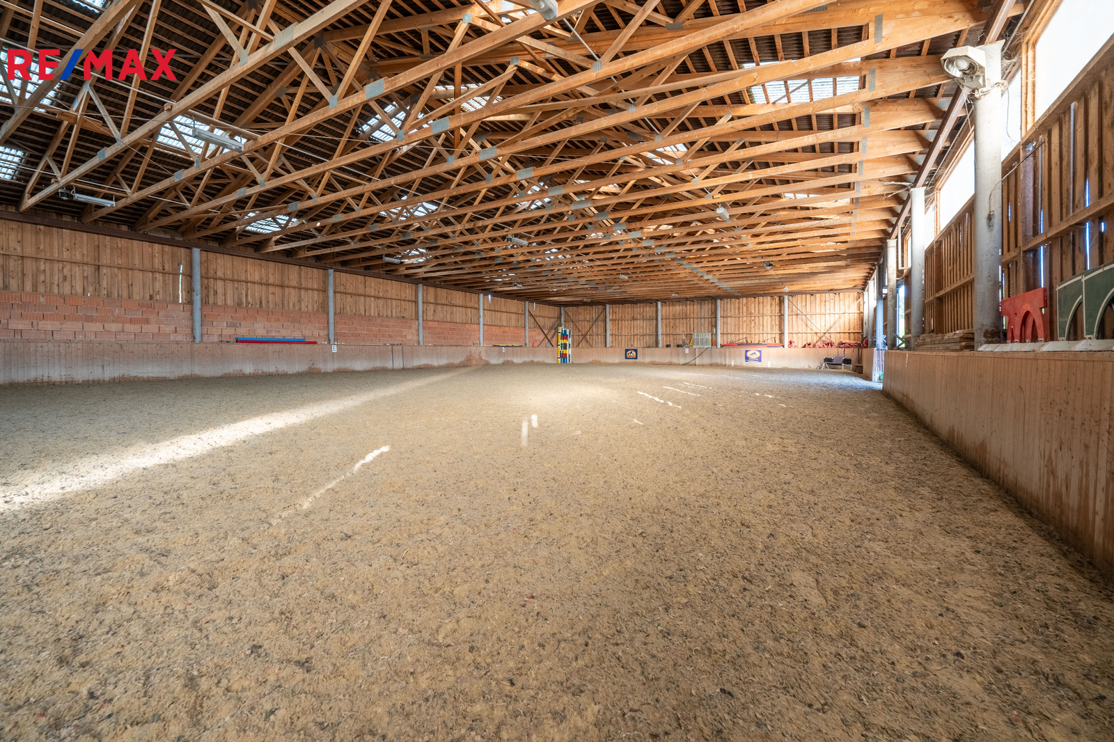 Dominantou celého areálu je velká krytá jízdárna, která umožňuje celoroční provoz bez ohledu na počasí. Díky své velikosti a technickému řešení je ideální pro trénink, jezdecké soutěže či rekreační jízdu.