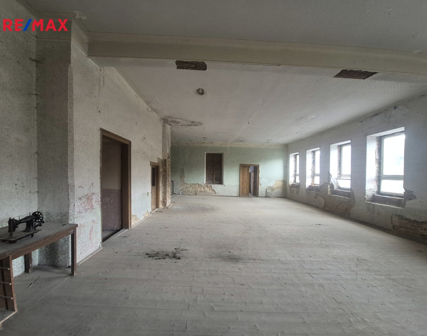 V 1. patře o celkové výměře 217 m2 se nachází bývalý taneční sál s pódiem. Na sál navazuje bývalý výčep, šatna a původní sociální zařízení.