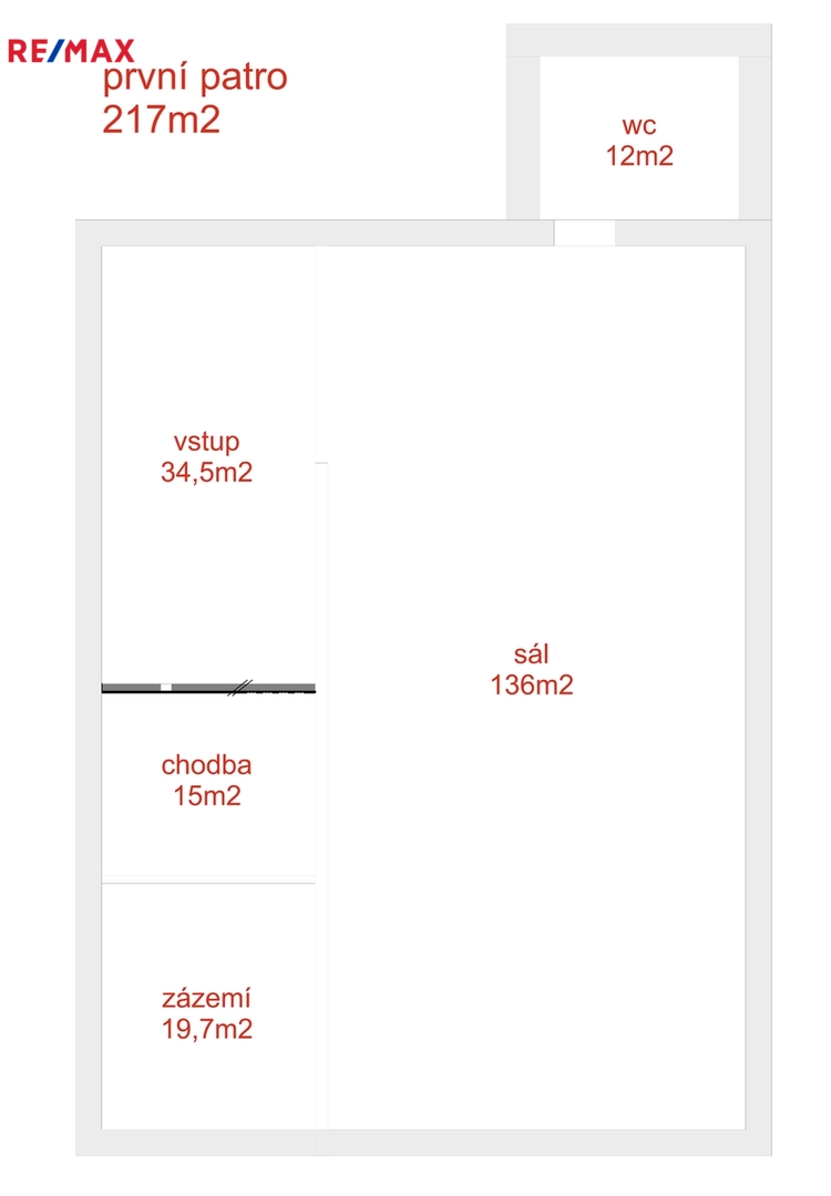Nad celým prostorem je prostorná půda o výměře 210 m2, kde by se dalo vybudovat podkroví.