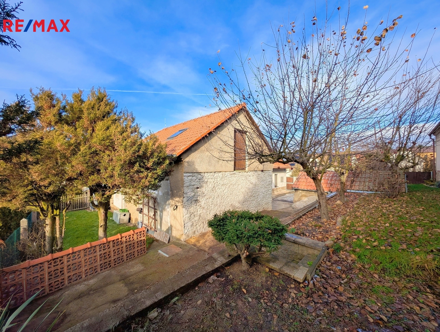 Pozemek o celkové výměře 472 m² je oplocený a částečně terasovitý. Zahrada je orientovaná na jih a díky jabloním nabízí příjemné soukromí. Nádvoří u domu je rovinaté a umožňuje parkování jednoho vozu. Druhé auto lze zaparkovat v garáži (22.4 m² ) a další místo je možné před domem na ulici. Na nádvoří se nachází také podzemní sklípek.