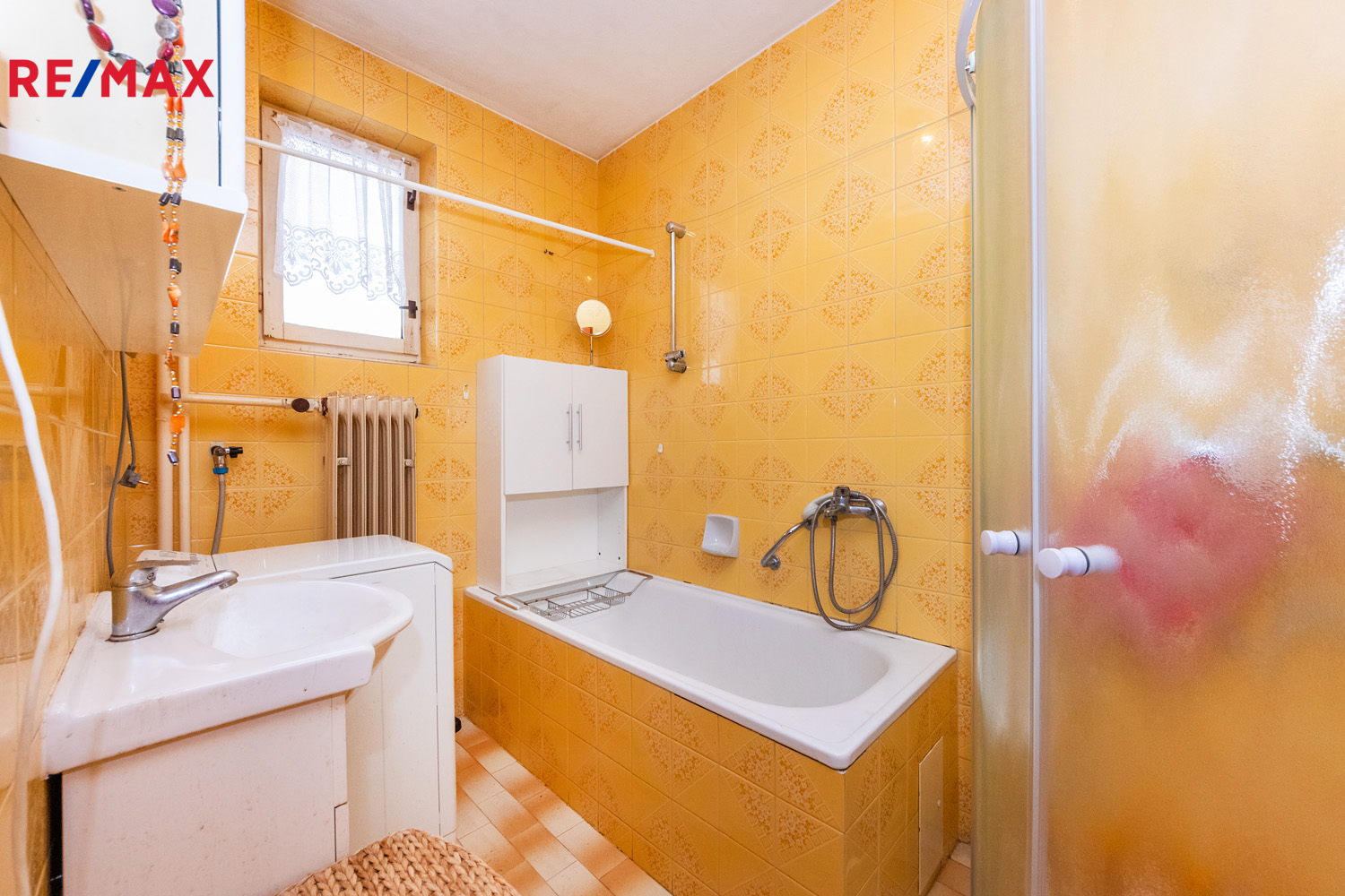 Přízemí (84 m2): veranda, centrální chodba se schodištěm, kuchyň, obývací pokoj, velký pokoj, komora, samostatné WC, koupelna s vanou i sprchovým koutem.
