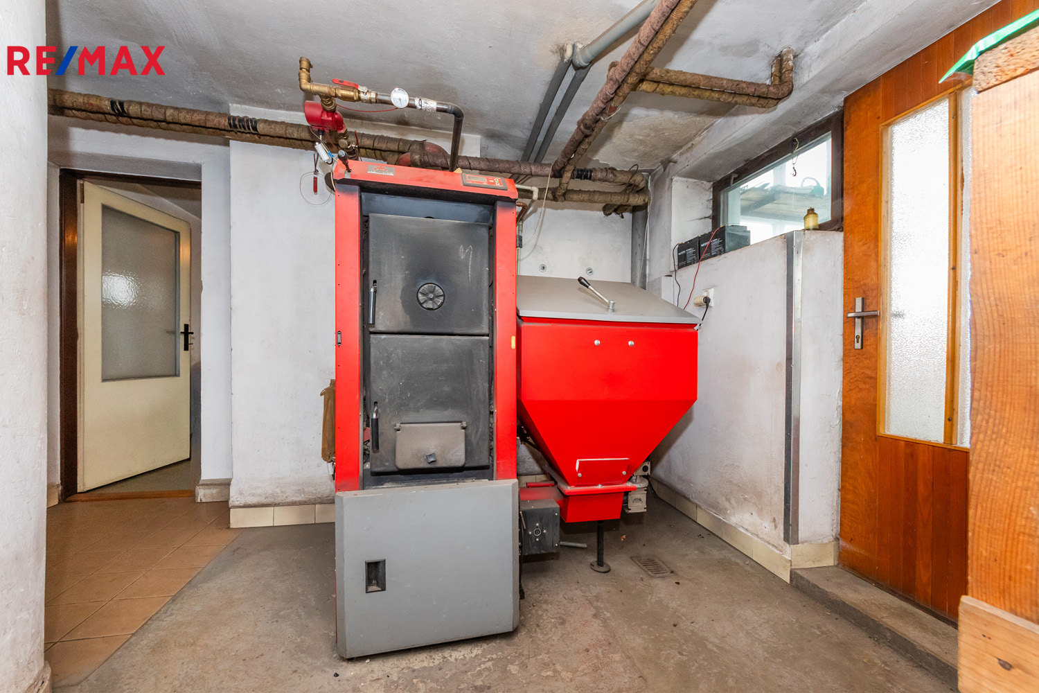 Suterén (80 m2): chodba a 6 místností – černá kuchyně, kotelna, sklad uhlí a další skladové prostory.