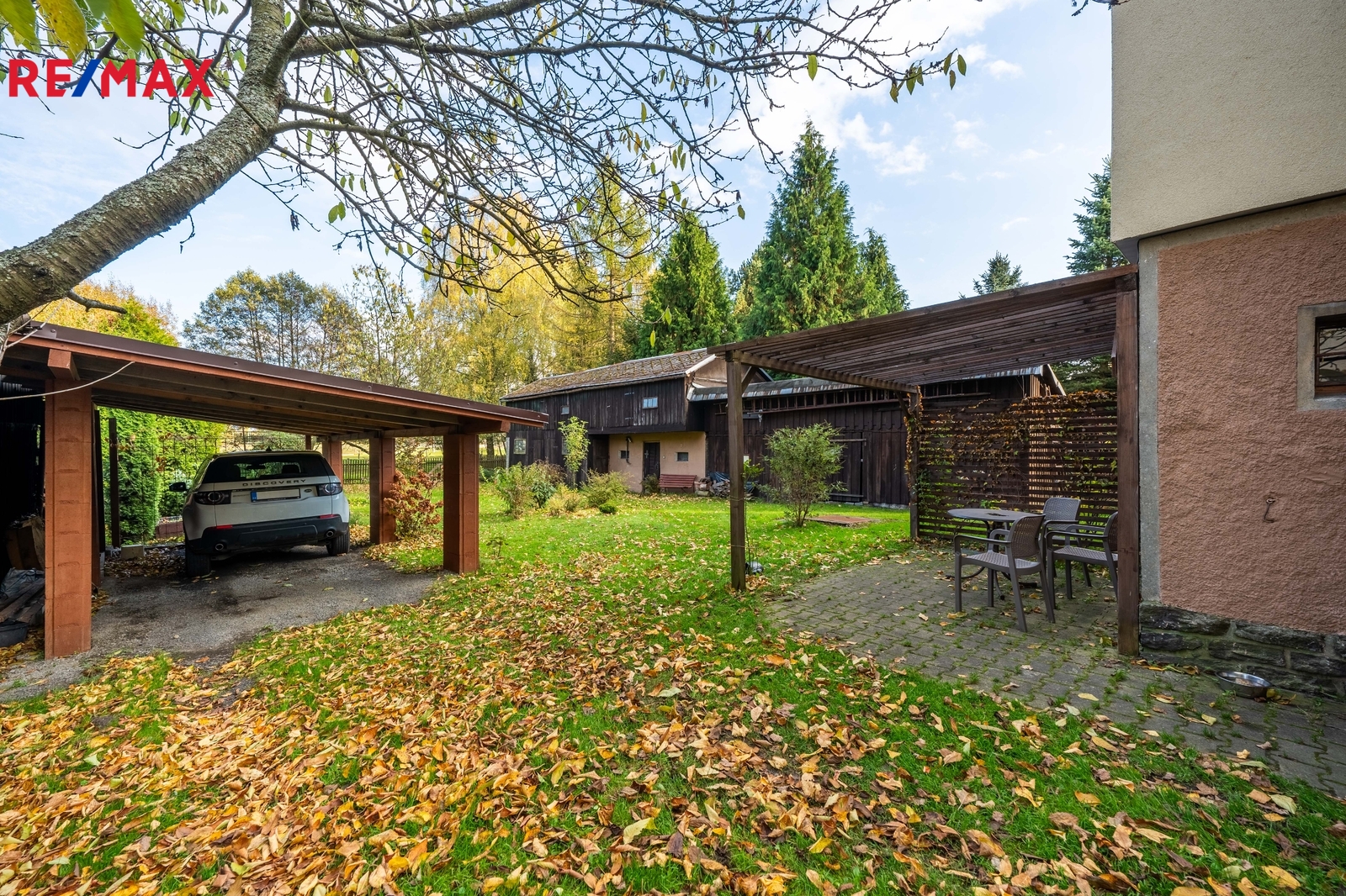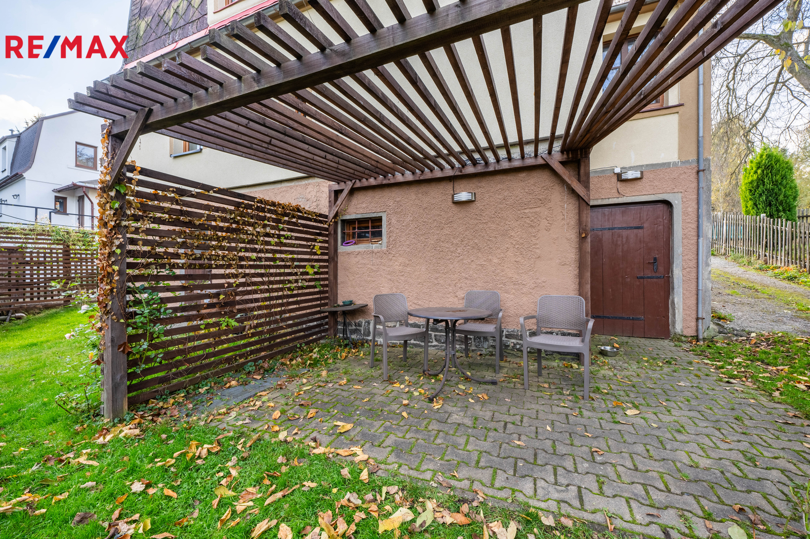Zahrada o výměře 440 m² je dostatečná pro odpočinek, grilování po výletech po okolí. Parkování zajištěno na pozemku pod zastřešeným přístavkem.