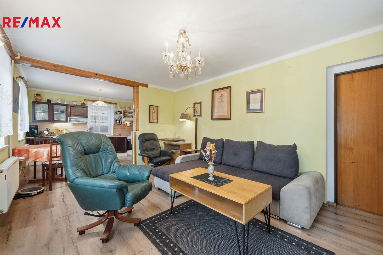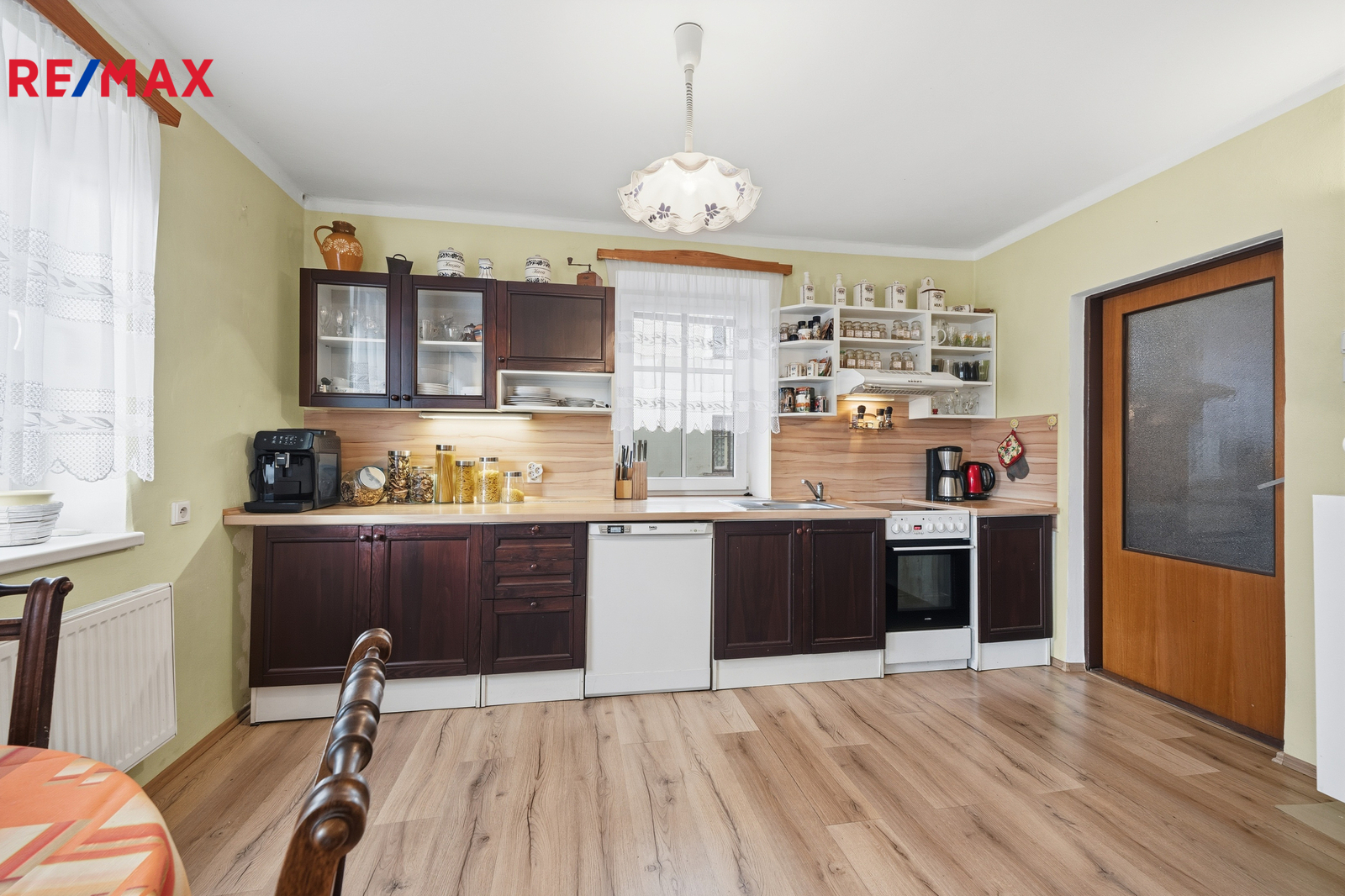 Dům s dispozicí 5+kk o celkové ploše 229,4 m², užitná plocha 129,1 m², obytná plocha 100,3 m², se 2 koupelnami a WC, zahradou (440 m²), stodolou, dílnou, zastřešeným parkovacím stáním a pergolou je ve dobrém stavu, zateplený.