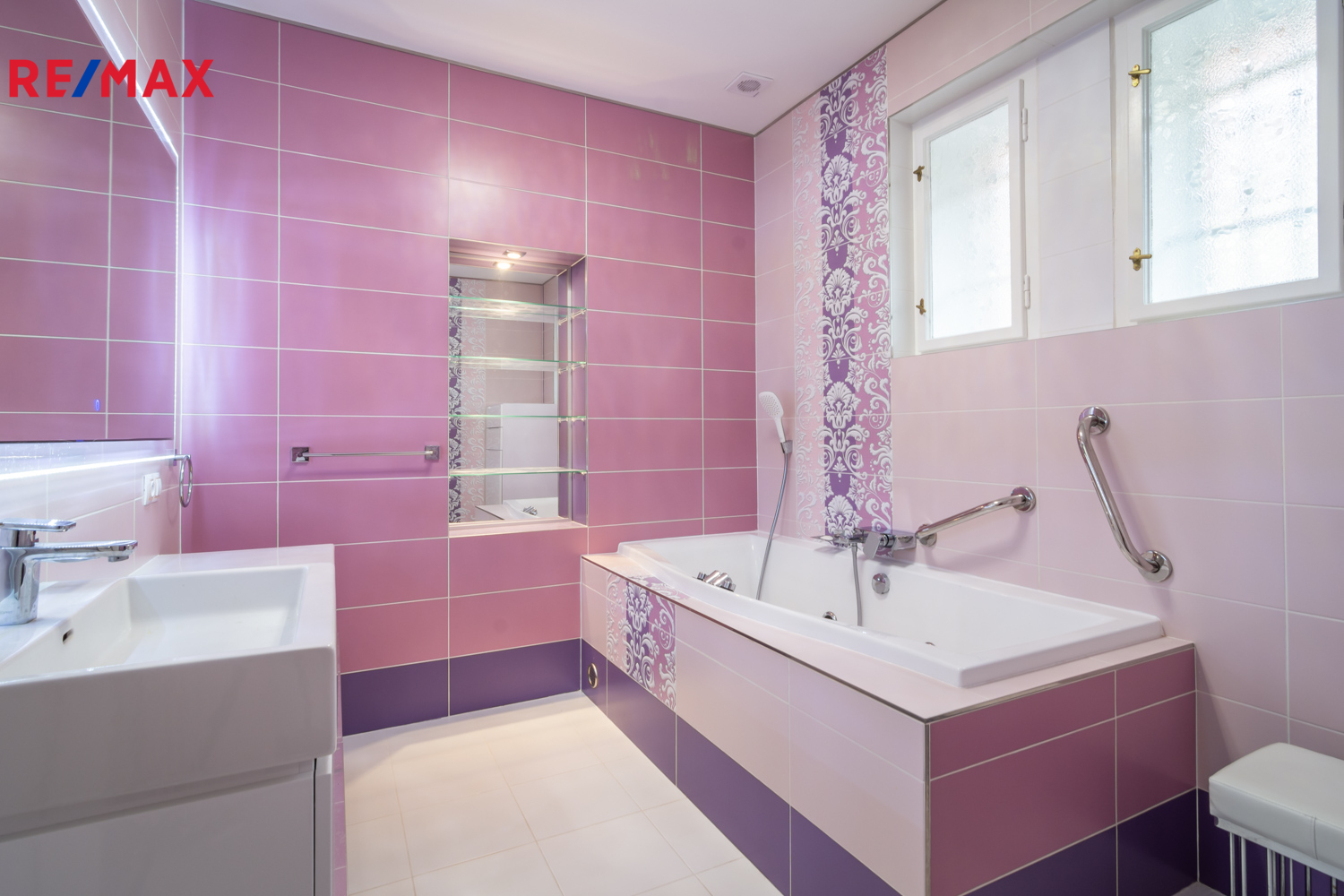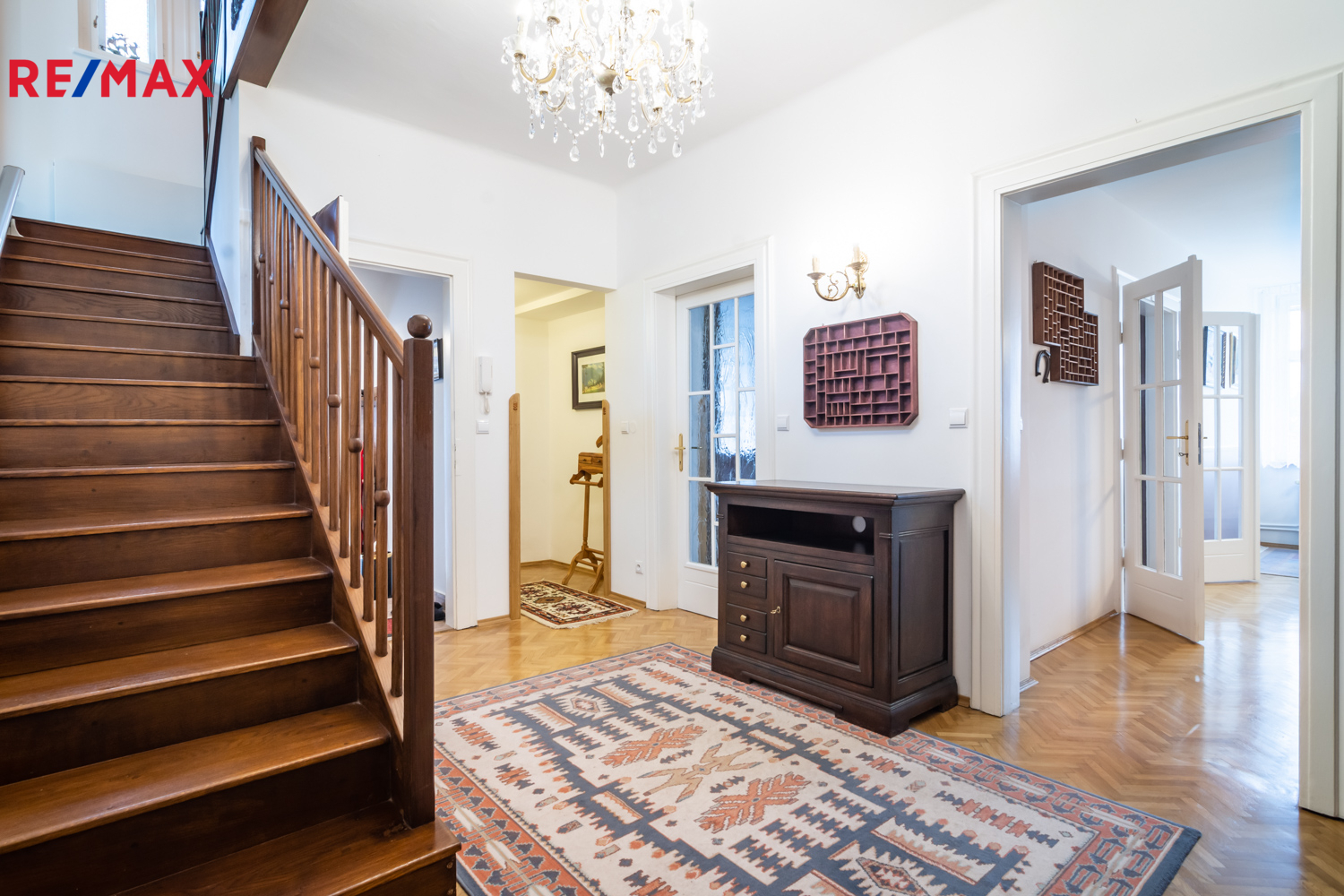V exkluzivním zastoupení majitelů Vám představujeme vilu 7+2 s osobitým charakterem v oblíbené lokalitě, v Máchově ulici, Slaný. Tato výjimečná nemovitost se nachází v jednosměrné a klidné ulici v bezprostřední blízkosti centra města Slaný. Jedná se o vilu vystavěnou v meziválečných letech s velkorysým dispozičním uspořádáním, úžasnou atmosférou a s krásným výhledem na historické centrum města a blízký klášter. Dům prošel v posledních letech rozsáhlou rekonstrukcí. Kompletně byly rekonstruovány všechny koupelny a WC: nové sanitární vybavení, nové obklady, dlažby a designové doplňky, byla vyměněna kuchyňská linka včetně spotřebičů, která svým uspořádáním odpovídá moderním trendům vaření. Zadní část domu byla nově odizolována, fasáda domu zateplena a omítnuta. V domě byly sníženy stropy a udělány nové omítky, renovováno schodiště, vyměněny či renovovány interiérové dveře včetně zárubní. Velký pozemek v jižním svahu má výměru 1580 m2 a nabízí nejen plno slunce a nádherný výhled na Slaný, ale hlavně prostor pro život bez kompromisů a realizaci přání nového majitele. Na zahradě je nyní k dispozici velká terasa přístupná ze zimní zahrady domu, vyhřívaný krytý bazén s protiproudem a možností ohřevu vody tepelným čerpadlem, pergola s posezením, letní domek – chatka v horní části zahrady. Celá zahrada, která je rozčleněná do několika různorodých částí plných stromů, okrasných keřů a rostlin, vám tak dopřává soukromí a bohatý prostor pro relax i zábavu. Přístup k vile je z klidné ulice. Chodník a schody k domu jsou v zimě vyhřívané (teplotní a sněžné čidlo), takže žádného uklouznutí ani odhazování sněhu se bát nemusíte. Před garáží, která pojme dvě auta stojící za sebou, je ještě jedno parkovací místo. Další možnosti parkování jsou v ulici před domem.