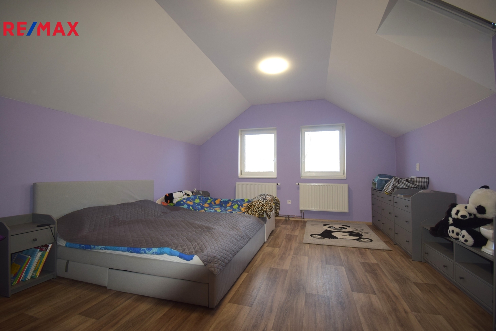 V podkroví jsou dvě ložnice, které jsou dodělány a využívány. Do budoucna se zvažovalo další využití podkroví. Z tohoto důvodu je předpřipravena další část, tedy koupelna se sprchovým koutem a přípravou na WC a k vlastnímu bydlení je zde místnost cca 40m2 s přípravou na kuchyňský kout. Po drobné úpravě je možné vše upravit jako samostatnou bytovou jednotku.