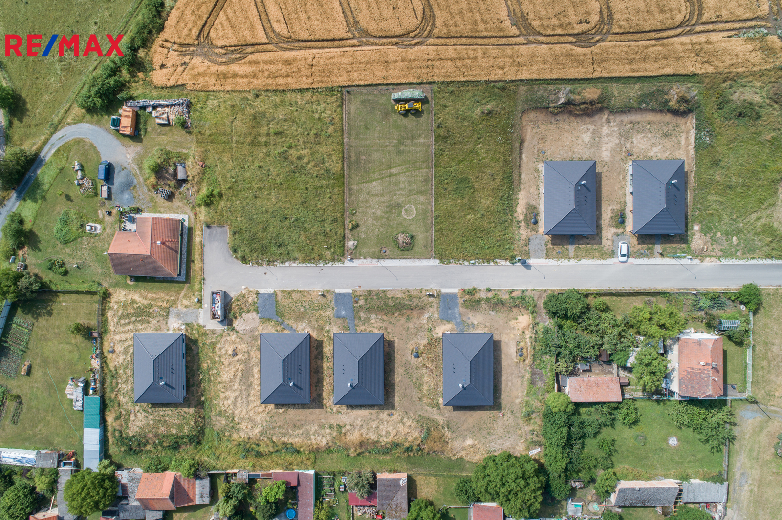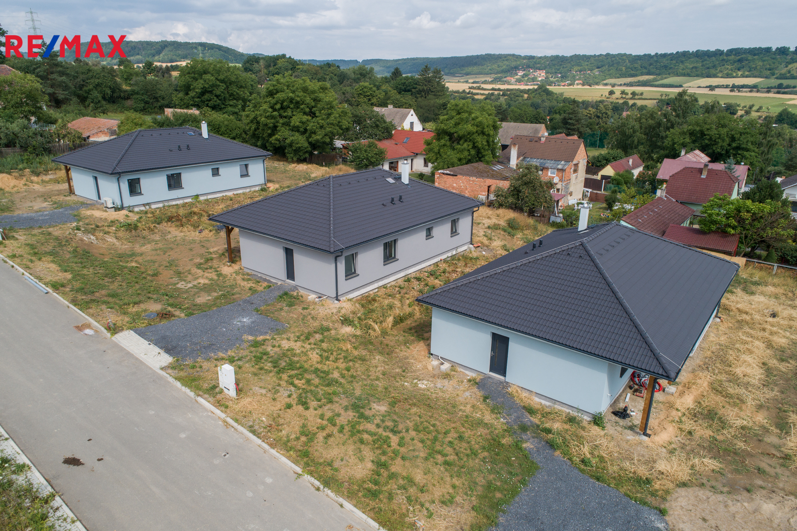 Hledáte svůj nový domov? Máme pro Vás novostavbu bungalovu se skvělou dostupností Prahy! Nabízíme ekonomicky úspornou stavbu jednopodlažního domu v rámci developerského projektu (4 zděné domy a 2 levnější dřevostavby s menším pozemkem) s užitnou plochou 121 m2 na pozemku o ploše 1036 m2, navrženou tak, aby splňovala současné nároky na moderní domov. Tak je koncipován i interiér bugalovu s dipozicí 4+kk. Za vchodem do budovy se nachází technická místnost, dále jsou umístěny 3 ložnice, 2 z nich mají vlastní šatnu, z chodby je dále vstup do koupelny s WC a do dalšího, samostatného WC. V čele chodby vstoupíme do prostorného, světlého obývacího pokoje s přípravou na kuchyňský kout. Zde jsou francouzská okna do zahrady.