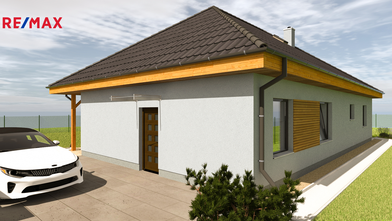 Jedná se o ekonomicky úspornou novostavbu jednopodlažního bungalovu navrženou tak, aby splňovala současné nároky na moderní domov. Tak je koncipován i interiér s dispozicí 4+kk. U vchodu do budovy se nachází technická místnost pro obsluhu tepelného čerpadla, dále jsou umístěny 3 ložnice, 2 z nich mají vlastní šatnu, z chodby je dále vstup do koupelny s WC a do dalšího, samostatného WC. V čele chodby vstoupíme do prostorného, světlého obývacího pokoje s přípravou na kuchyňský kout. Zde jsou francouzská okna do zahrady.