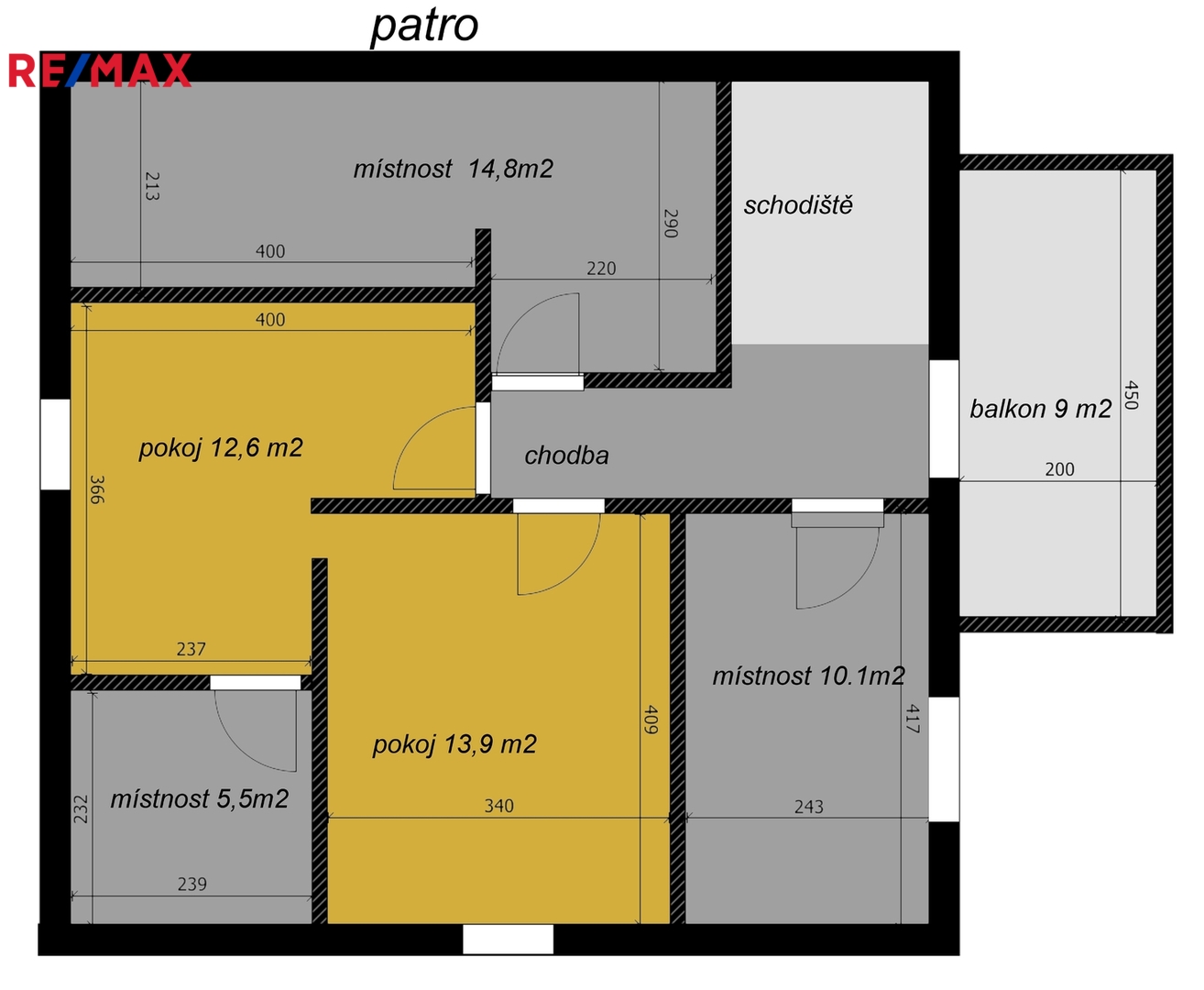 V patře jsou dva pěkné velké pokoje s možností dobudování třetího, půdní prostor a ochoz. Dům je podsklepený. Jedná se o samostatně stojící cihlový dům z 60. let s napojením na elektřinu, vodovod a kanalizaci. Dalším zdrojem vody je studna.